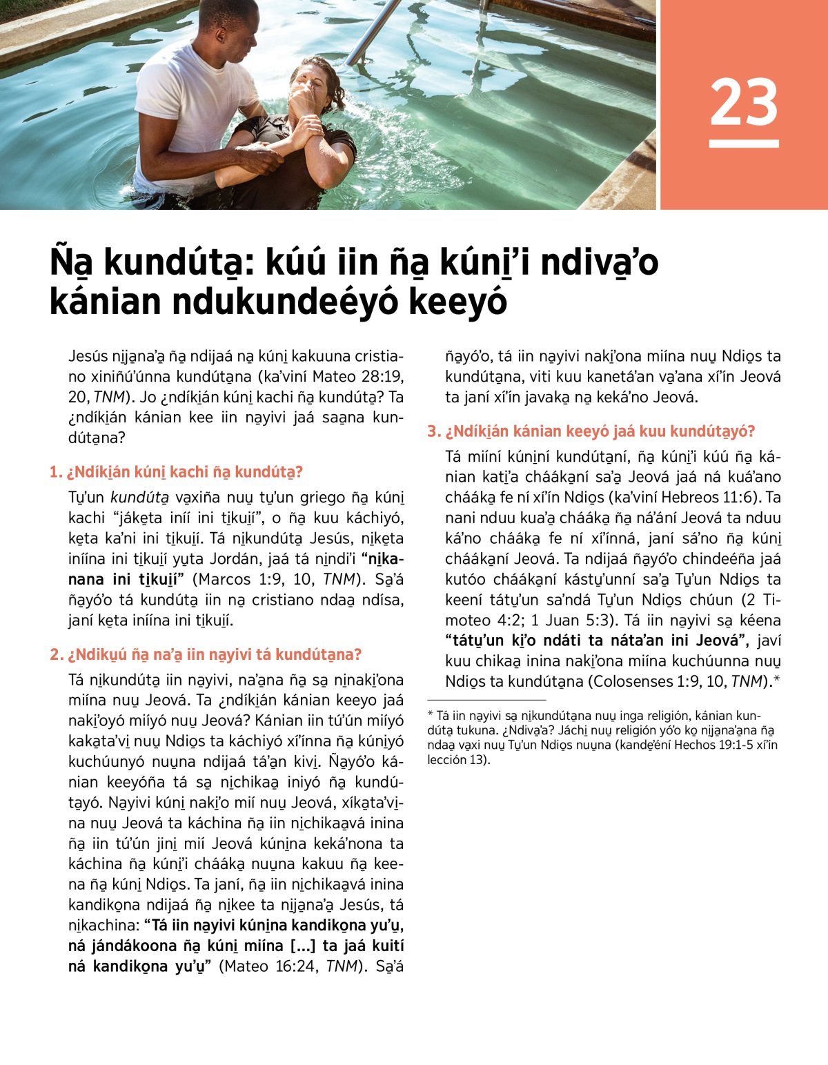Jaá ná kundaa̱ chááka̱ inindó saʼa̱ ña̱ ni̱kundúta̱ Jesús, kaʼvindó Mateo 3:13-17, TNM. Tá ni̱ndiʼi kanatúʼúnndó saʼa̱ ña̱ va̱xi yóʼo: