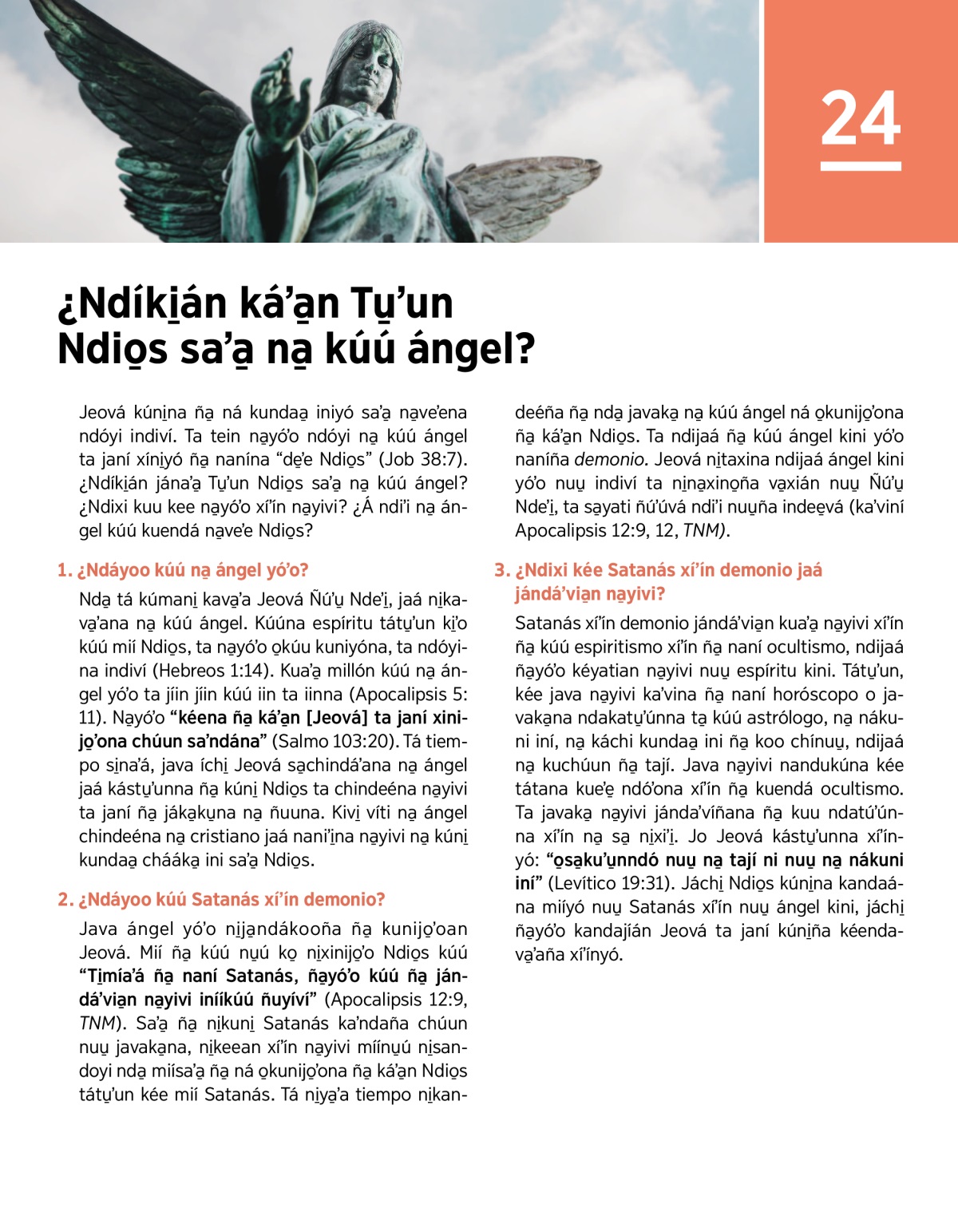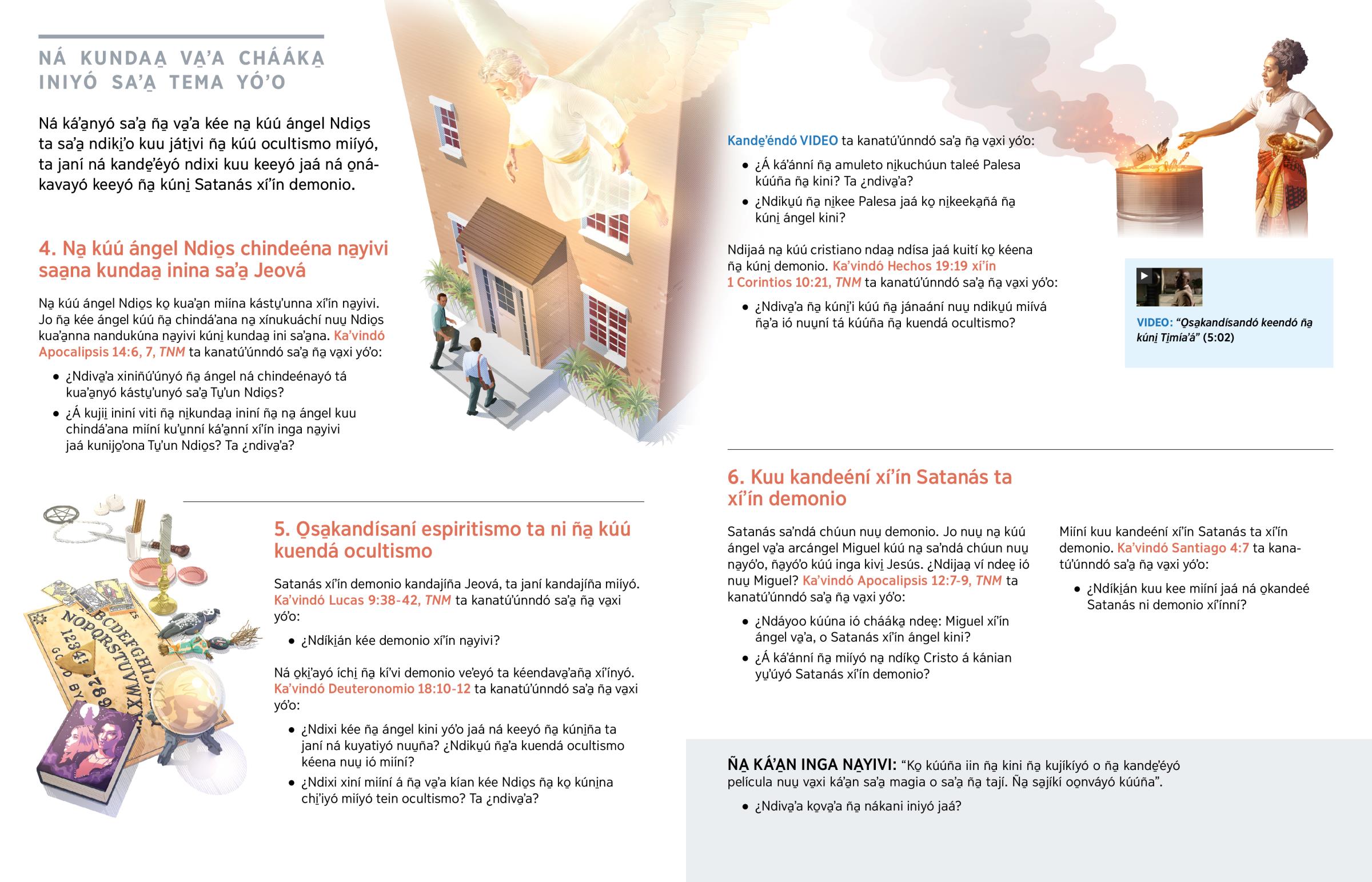 Ná káʼa̱nyó saʼa̱ ña̱ va̱ʼa kée na̱ kúú ángel Ndio̱s ta saʼa̱ ndiki̱ʼo kuu játi̱vi ña̱ kúú ocultismo miíyó, ta janí ná kande̱ʼéyó ndixi kuu keeyó jaá ná o̱nákavayó keeyó ña̱ kúni̱ Satanás xíʼín demonio.