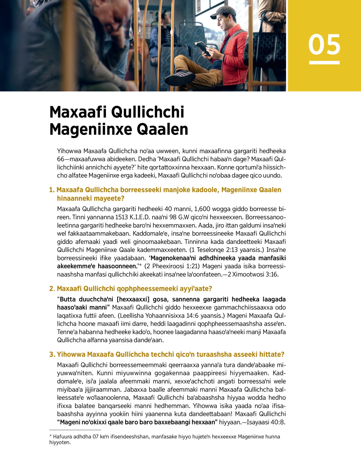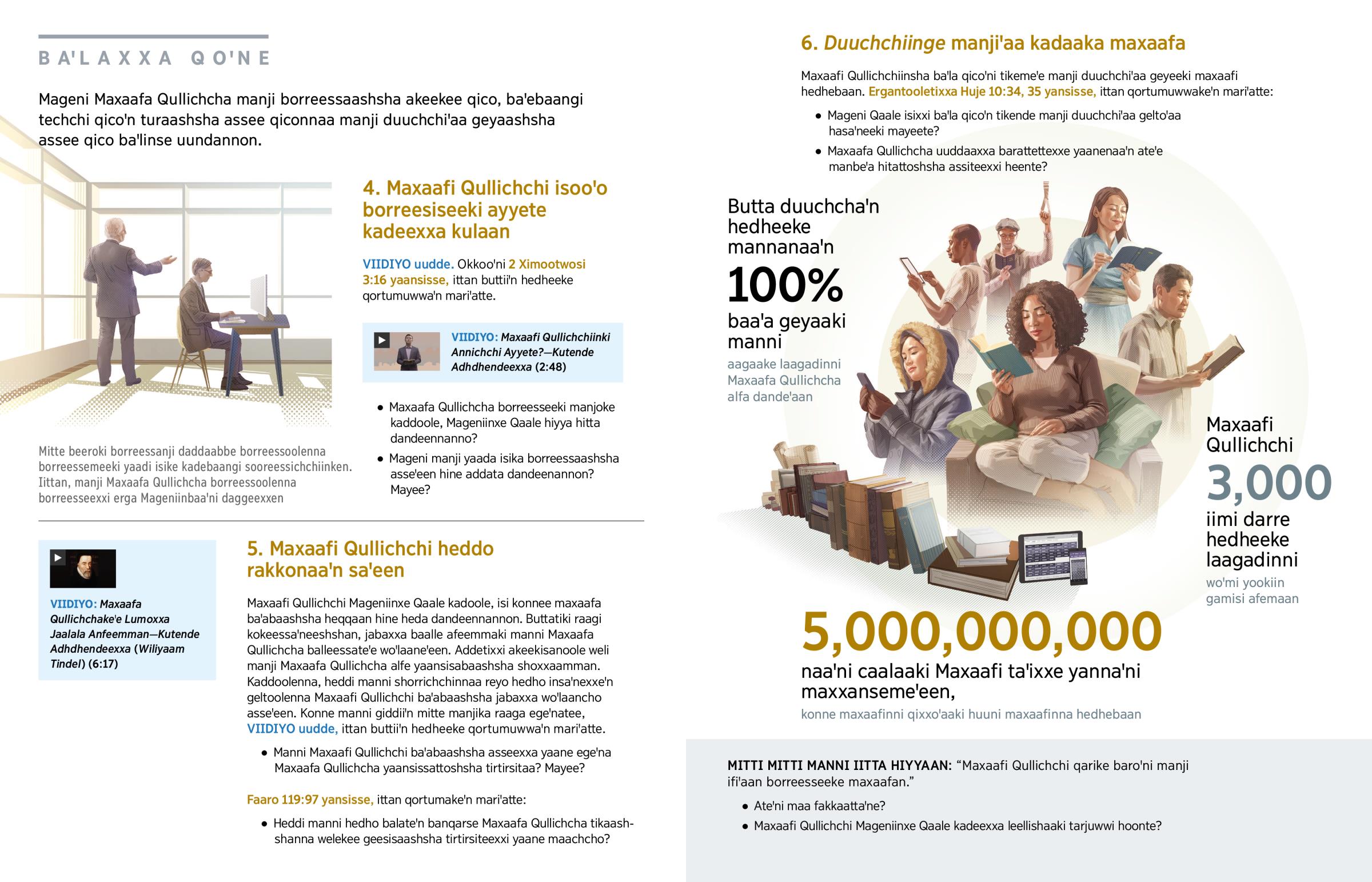 Yihowwa Maxaafa Qullichcha noꞌaa uwween, kunni maxaafinna gargariti hedheeka 66—maxaafuwwa abideeken. Dedha ‘Maxaafi Qullichchi habaaꞌn dage? Maxaafi Qullichchiinki annichchi ayyete?’ hite qortattoxxinna hexxaan. Konne qortumiꞌa hiissichcho alfatee Mageniinxe erga kadeeki, Maxaafi Qullichchi noꞌobaa dagee qico uundo.