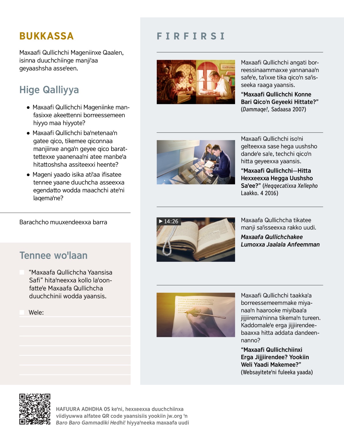 MITTI MITTI MANNI IITTA HIYYAAN: “Maxaafi Qullichchi qarike baroꞌni manji ifiꞌaan borreesseeke maxaafan.”
