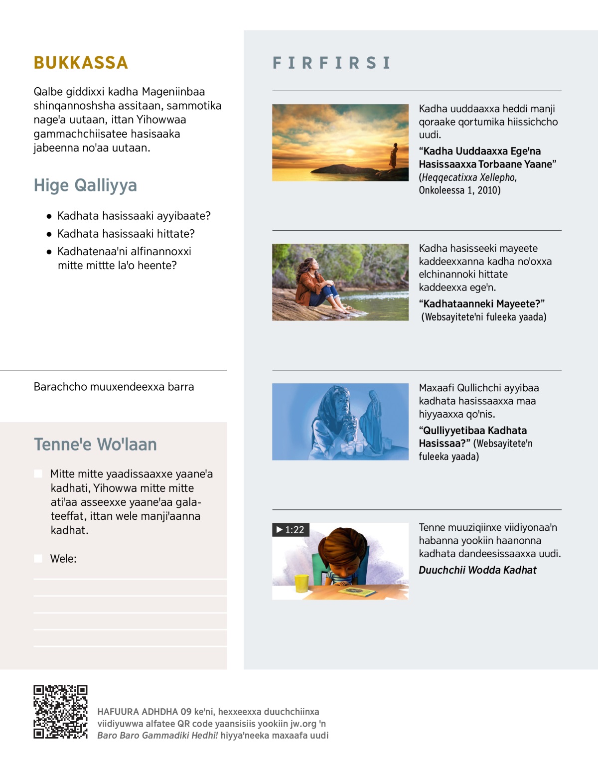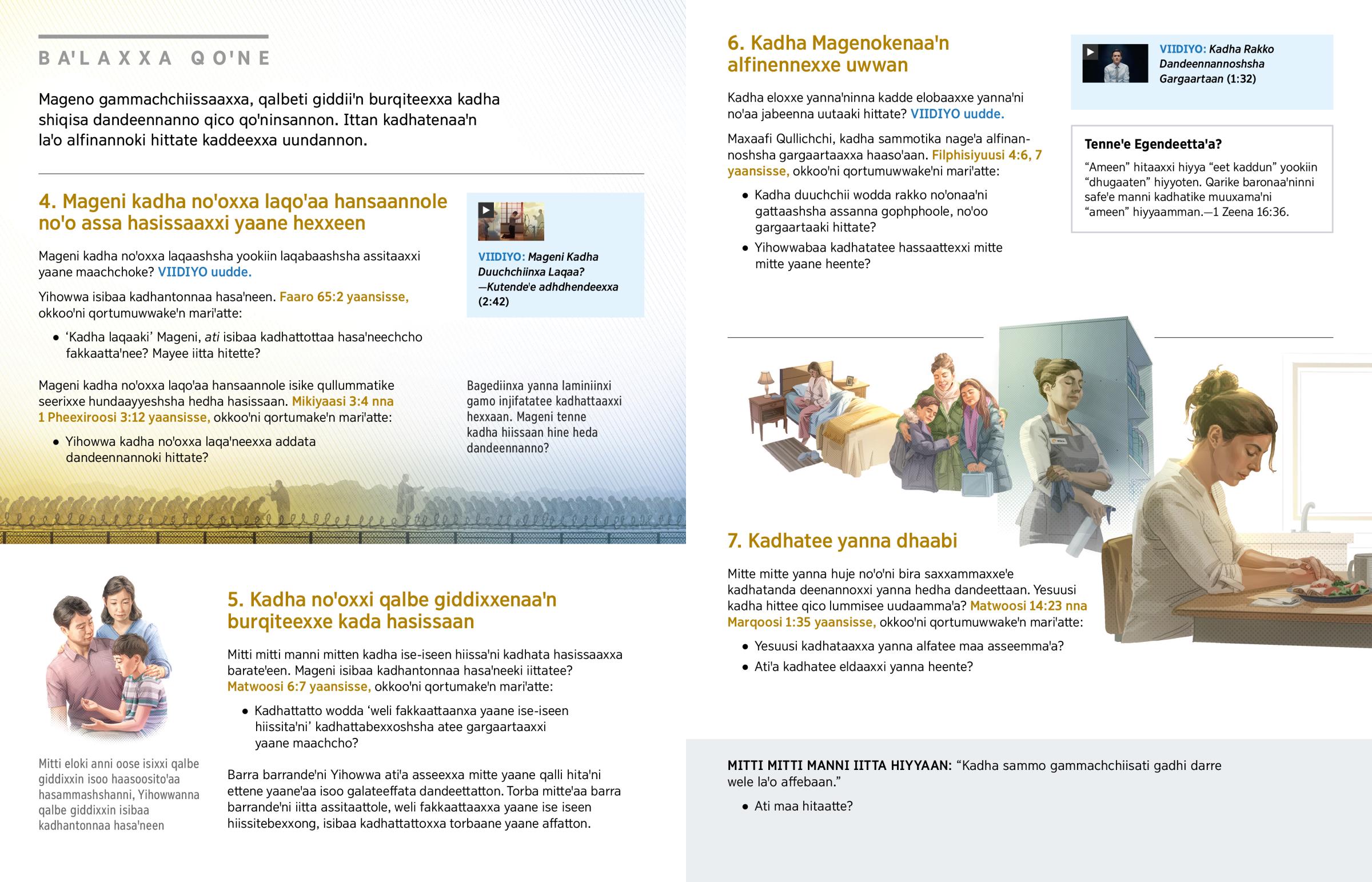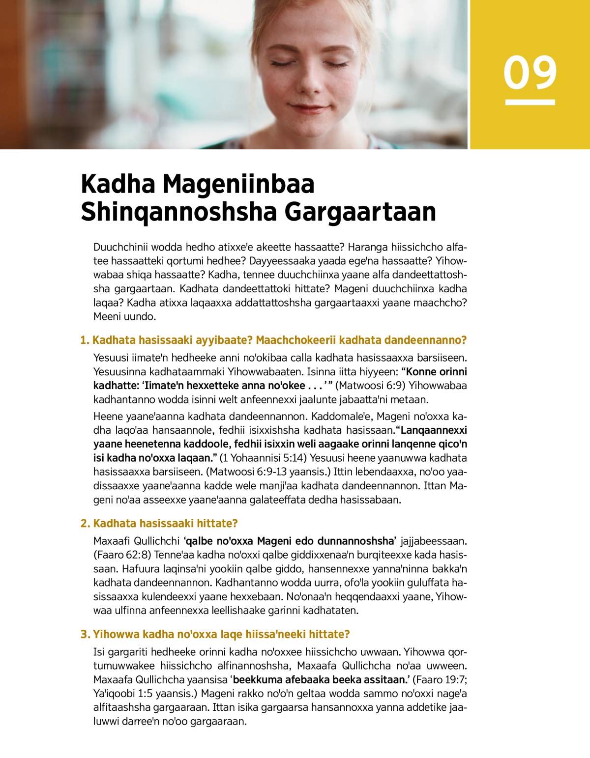 Duuchchinii wodda hedho atixxeꞌe akeette hassaatte? Haranga hiissichcho alfatee hassaatteki qortumi hedhee? Dayyeessaaka yaada egeꞌna hassaatte? Yihowwabaa shiqa hassaatte? Kadha, tennee duuchchiinxa yaane alfa dandeettattoshsha gargaartaan. Kadhata dandeettattoki hittate? Mageni duuchchiinxa kadha laqaa? Kadha atixxa laqaaxxa addattattoshsha gargaartaaxxi yaane maachcho? Meeni uundo.