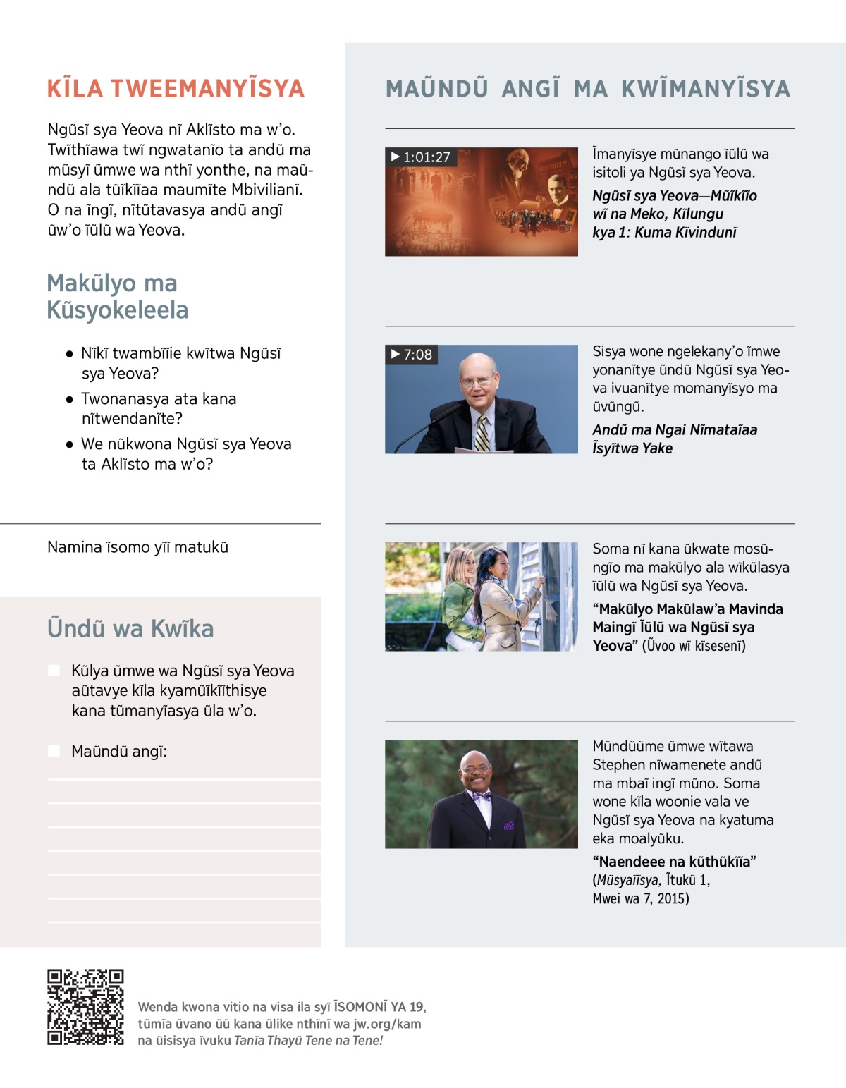Soma nĩ kana ũkwate mosũngĩo ma makũlyo ala wĩkũlasya ĩũlũ wa Ngũsĩ sya Yeova.