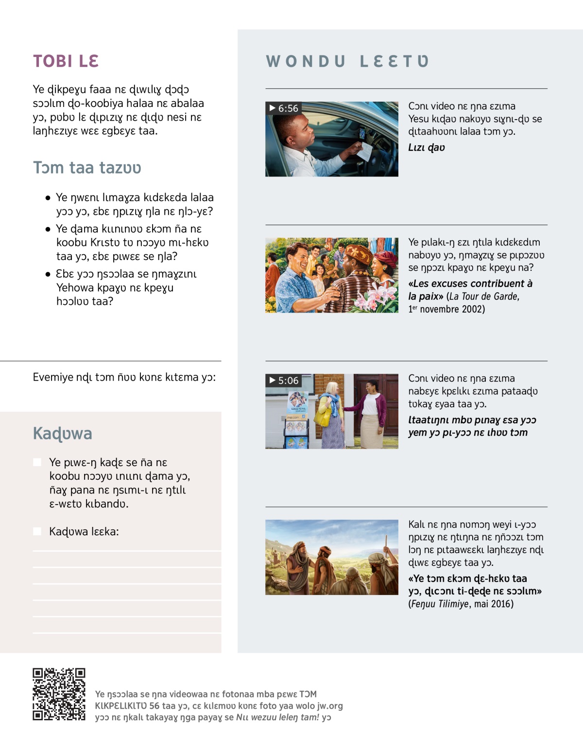 Ye ŋwobi ɛgbɛyɛ taa kediɣzaɣ nakɛyɛ ɛjaɖɛ naɖɩyɛ taa yɔ, pɩtɩla ŋŋkaɣ nɩʋ kʋnʋŋ ŋgʋ pɔyɔɔdʋʋ yɔ; paa mbʋ yɔ, pɩkaɣ-ŋ labʋ ɛzɩ ñɔ-hɔʋ taa mba hɛkʋ taa ŋwɛɛ yɔ. Ɛbɛ yɔɔ? Mbʋ pʋyɔɔ yɔ paa ɛjaɖɛ nɖɩ ɖɩ-taa lɛ, takayɩsɩ kʋɖʋmsɩ yɔɔ ɖɩtɩŋɩɣna nɛ ɖɩkpɛlɩkɩɣ Bibl. Nɛ ɖɩlakɩ mbʋ payɩ ɖɩpɩzɩɣ yɔ nɛ ɖɩwɩlɩɣ ɖama sɔɔlɩm. Paa le ɖɩtɩɩwɛɛ yɔ, ɖa-tɩŋa ‘ɖɩyaɣ Yehowa hɩɖɛ, nɛ ɖɩsɛɣ-ɩ nɔɔ kʋɖʋmaɣ taa.’—Sofonii 3:9.