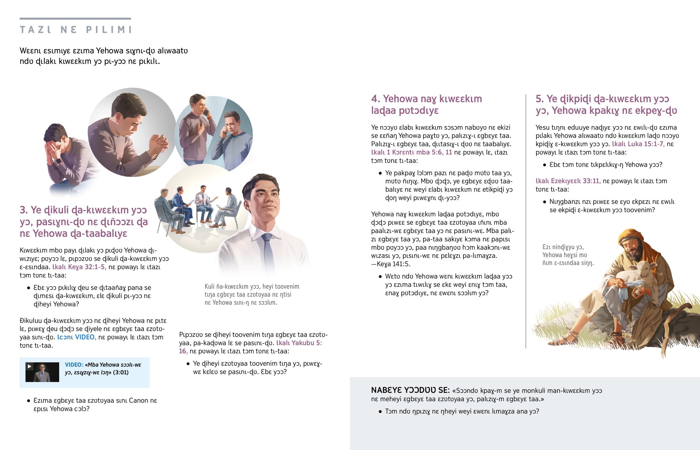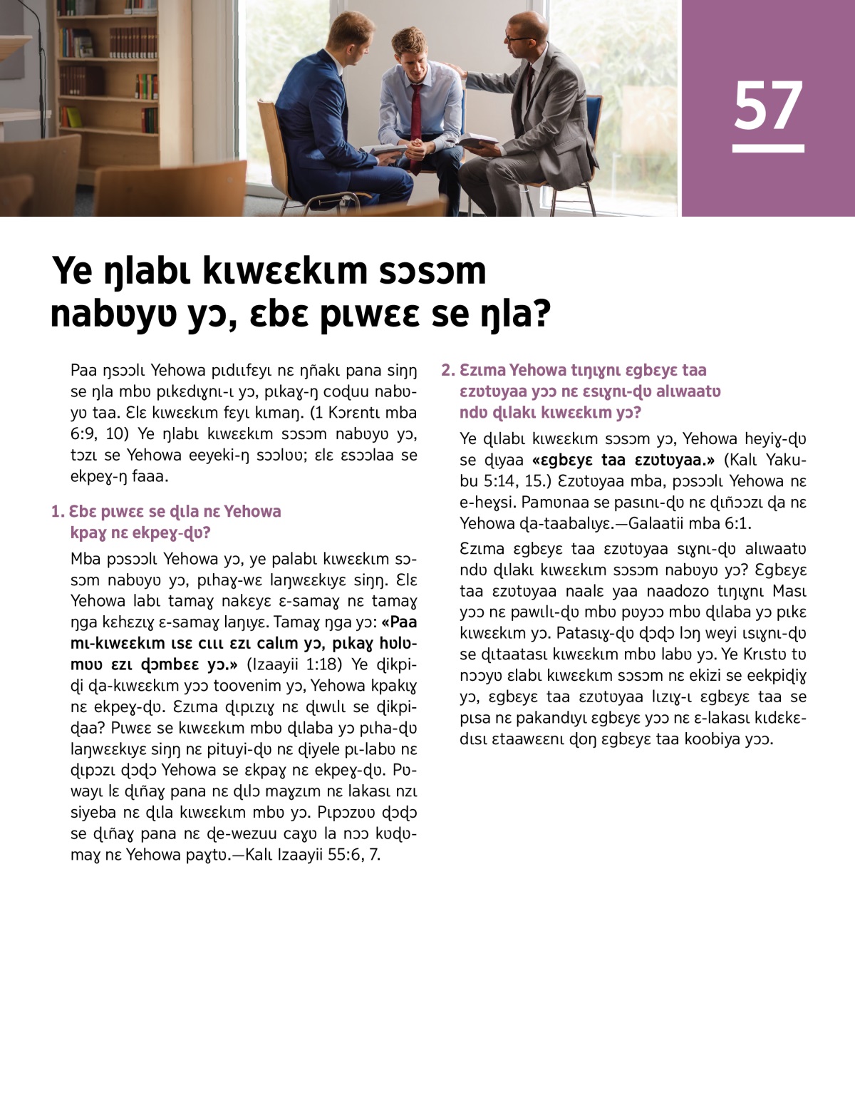 Kuli ña-kɩwɛɛkɩm yɔɔ, heyi toovenim tɩŋa ɛgbɛyɛ taa ɛzʋtʋyaa nɛ ŋtisi nɛ Yehowa sɩnɩ-ŋ nɛ sɔɔlɩm.
