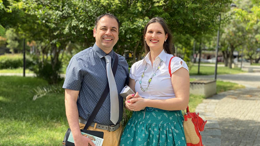 Leah ku se maridu William muda di Mérka pa Albánia. Leah fla: “Sirbi li abri nos menti i nu sta ta prende txeu. Nu prende txeu sobri modi ki nu ta resebe otus algen dretu, ku ruspetu i amizadi. Nu prende novus manera di prega i nu prende modi ki nu ta rasusina ku algen ku bazi na Bíblia.” William fla: “Maioria di kes algen ki nu ta vizita na Albánia gosta txeu di kes bera-mar bunitu. N gosta di faze kaminhada na kes rótxa di Albánia. Má kuzê ki N gosta más txeu li é kes algen! Na nos tiritóriu, ten txeu lugar ki kes algen li ten poku kontatu ku Tistimunhas di Jeová, pamodi nu ta prega la sô na ténpu di kanpanhas spesial. Óras ki nu ta ba prega la, alvês nu ta pasa un dia interu ta pâpia ku alguns família.”