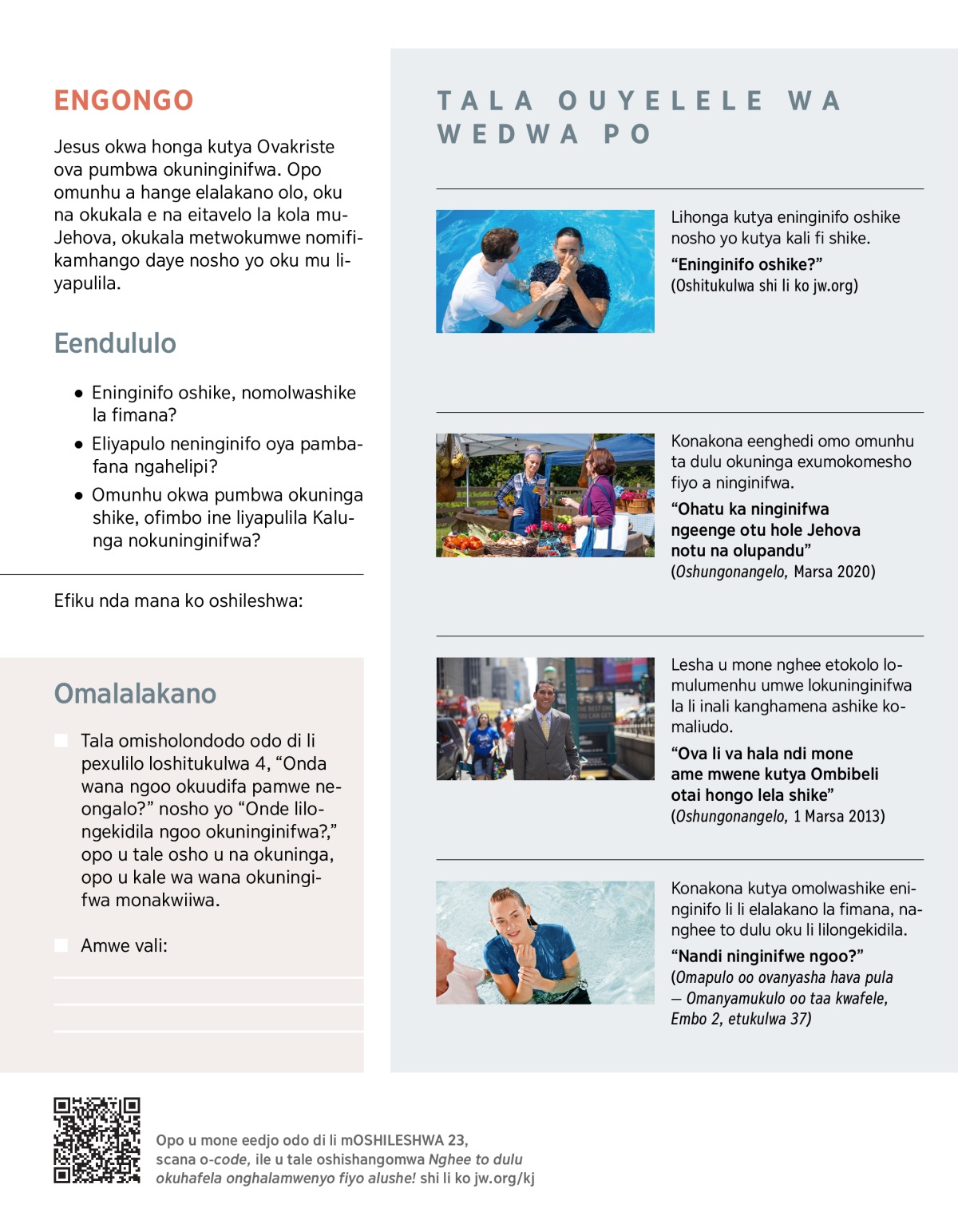 “Ohatu ka ninginifwa ngeenge otu hole Jehova notu na olupandu” (Oshungonangelo, Marsa 2020)