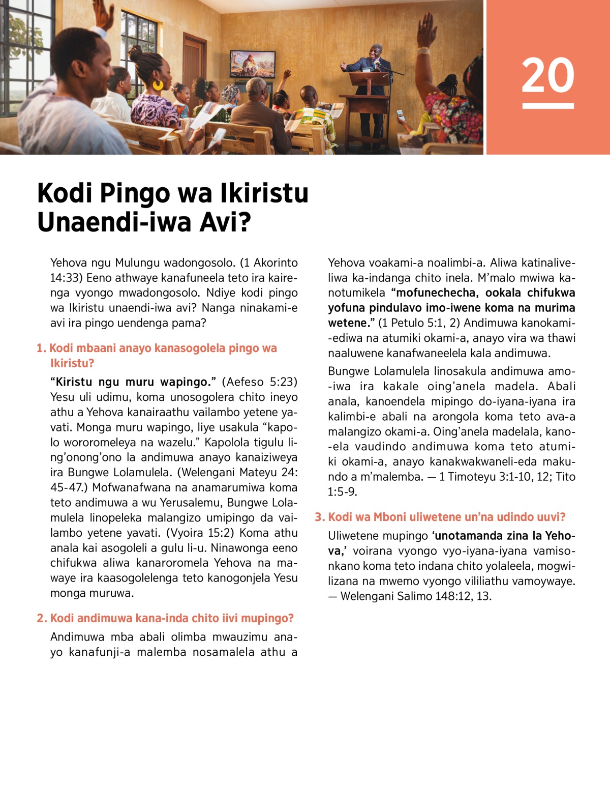 Yehova ngu Mulungu wadongosolo. (1 Akorinto 14:33) Eeno athwaye kanafuneela teto ira kairenga vyongo mwadongosolo. Ndiye kodi pingo wa Ikiristu unaendi-iwa avi? Nanga ninakami-e avi ira pingo uendenga pama?