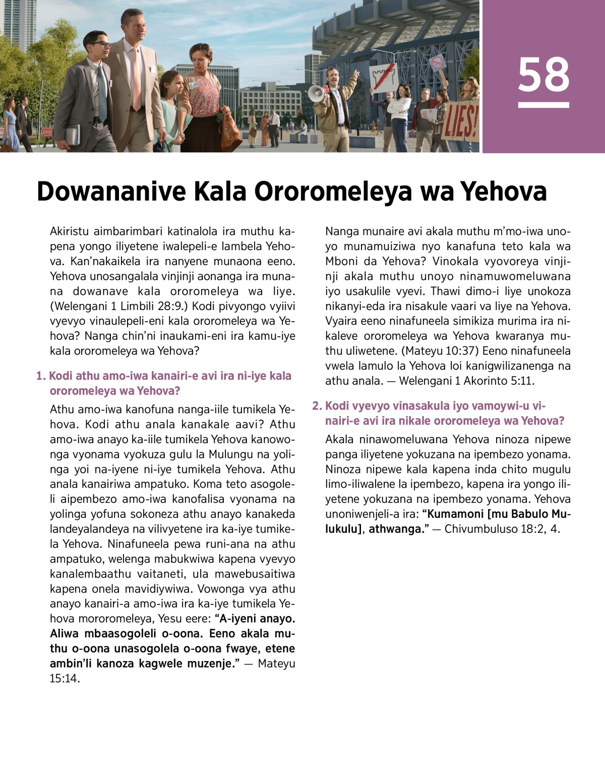 Ira nidowenave kala ororomeleya wa Yehova ninafuneela pewa gwilizana na athu anayo kaali ororomeleya wa liye.
