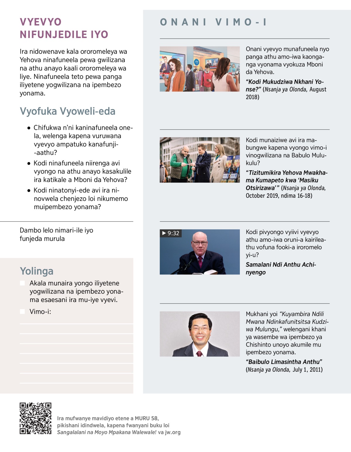 Onani vyevyo munafuneela nyo panga athu amo-iwa kaonganga vyonama vyokuza Mboni da Yehova.