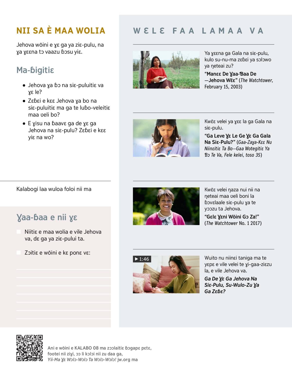 “Gɛlɛ Ɣɛni Wõini Gɔ Za!” (The Watchtower No. 1 2017)
