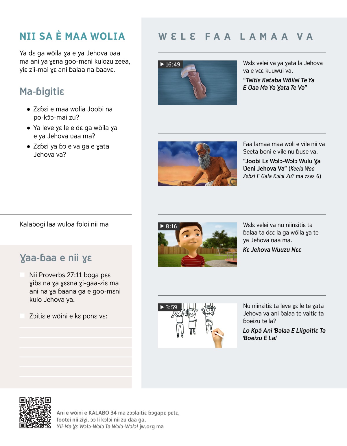 Ani wõila ɣana de ya Jehova ʋaa ma towa kɛ de yɛpɛ numaa wɔ e vile ba. Wõilai nii ɣa kɛ wɔnɔ de na ɣɛ ani ɓalaa na ɓaavɛ de yee ma. ƲILIOGI nii lɛ ga. Yá wolona, wo gaa-zaɣa-kɛɛ nii ɣaa wote.