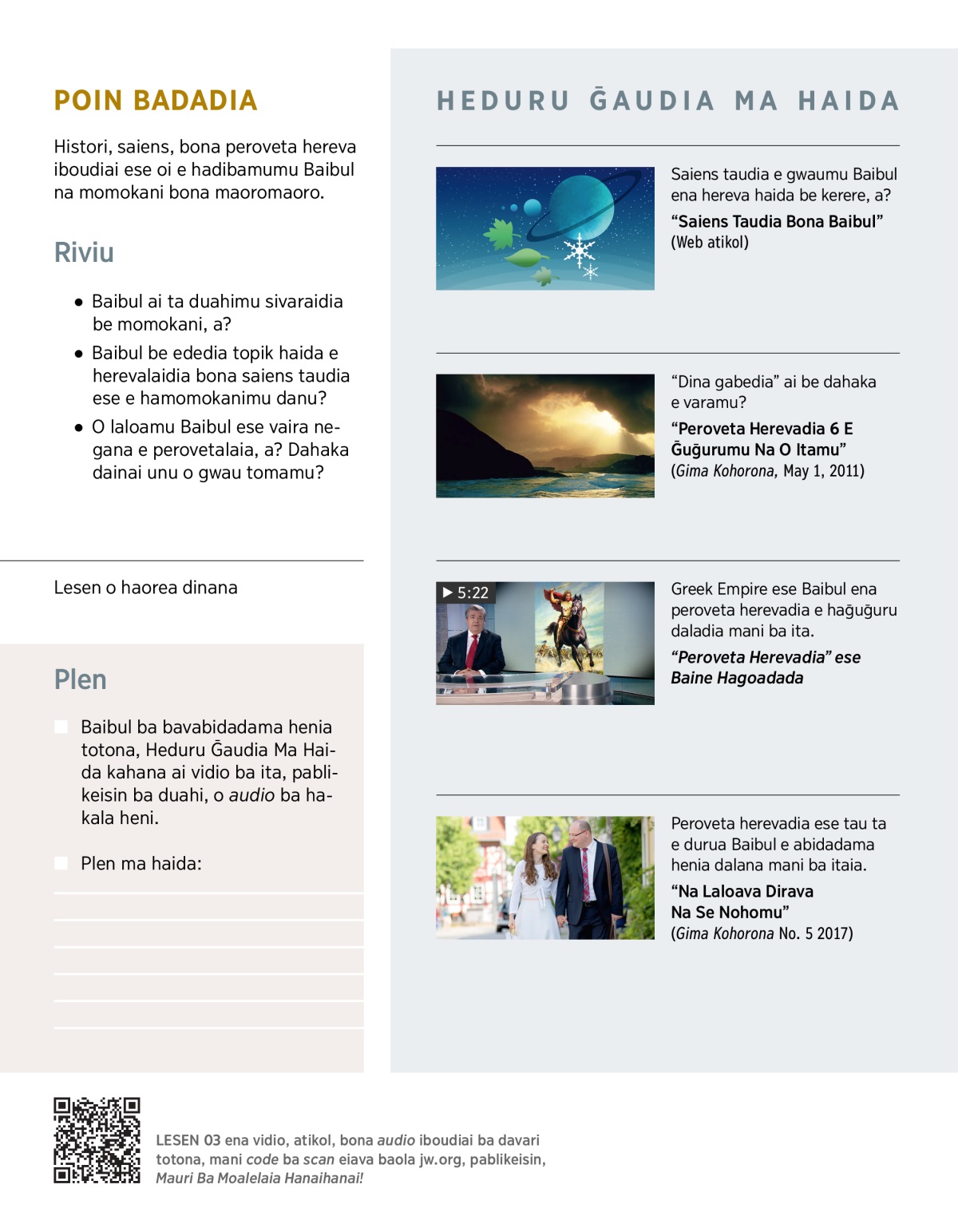 3. Dahaka dainai baita gwa diba Baibul na vaira negana e perovetalaia?