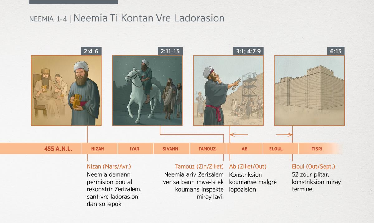 2:4-6 Neemia demann permision pou al rekonstrir Zerizalem, sant vre ladorasion dan so lepok