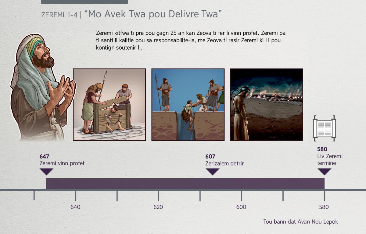Zeremi kitfwa ti pre pou gagn 25 an kan Zeova ti fer li vinn profet. Zeremi pa ti santi li kalifie pou sa responsabilite-la, me Zeova ti rasir Zeremi ki Li pou kontign soutenir li.