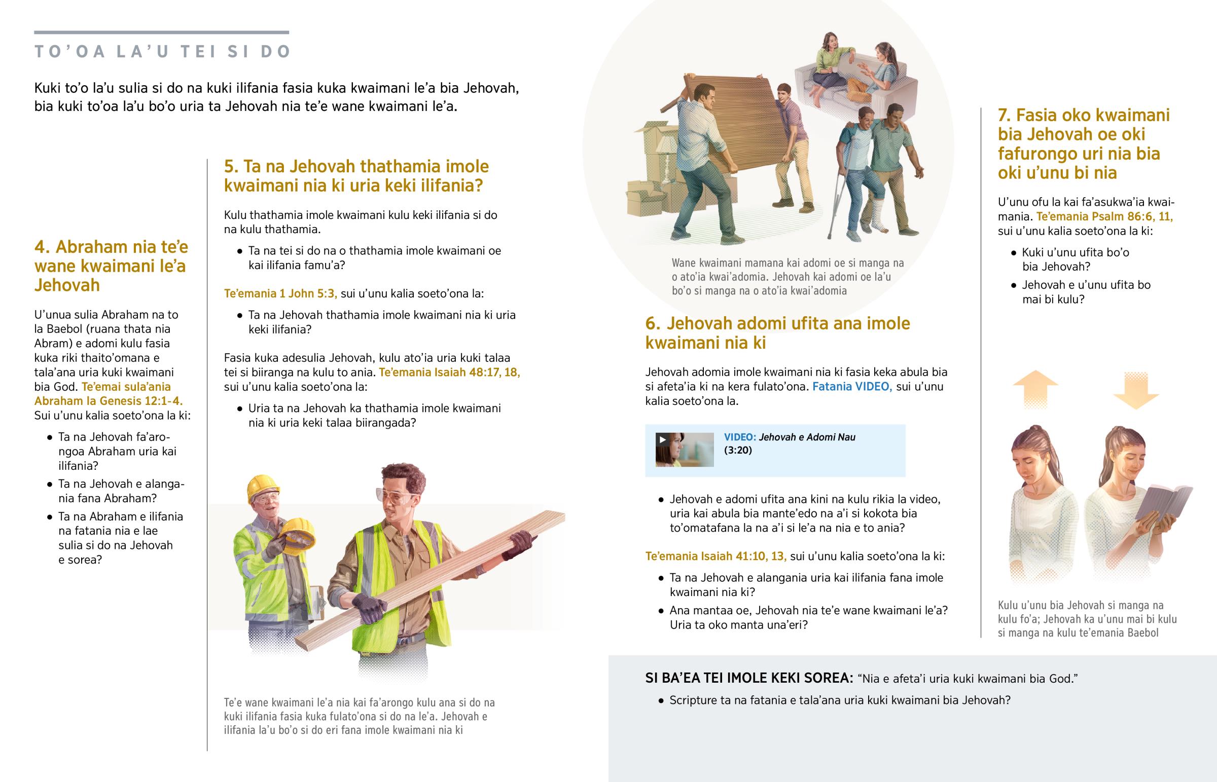 Jehovah adomia imole kwaimani nia ki fasia keka abula bia si afeta’ia ki na kera fulato’ona. Fatania VIDEO, sui u’unu kalia soeto’ona la.