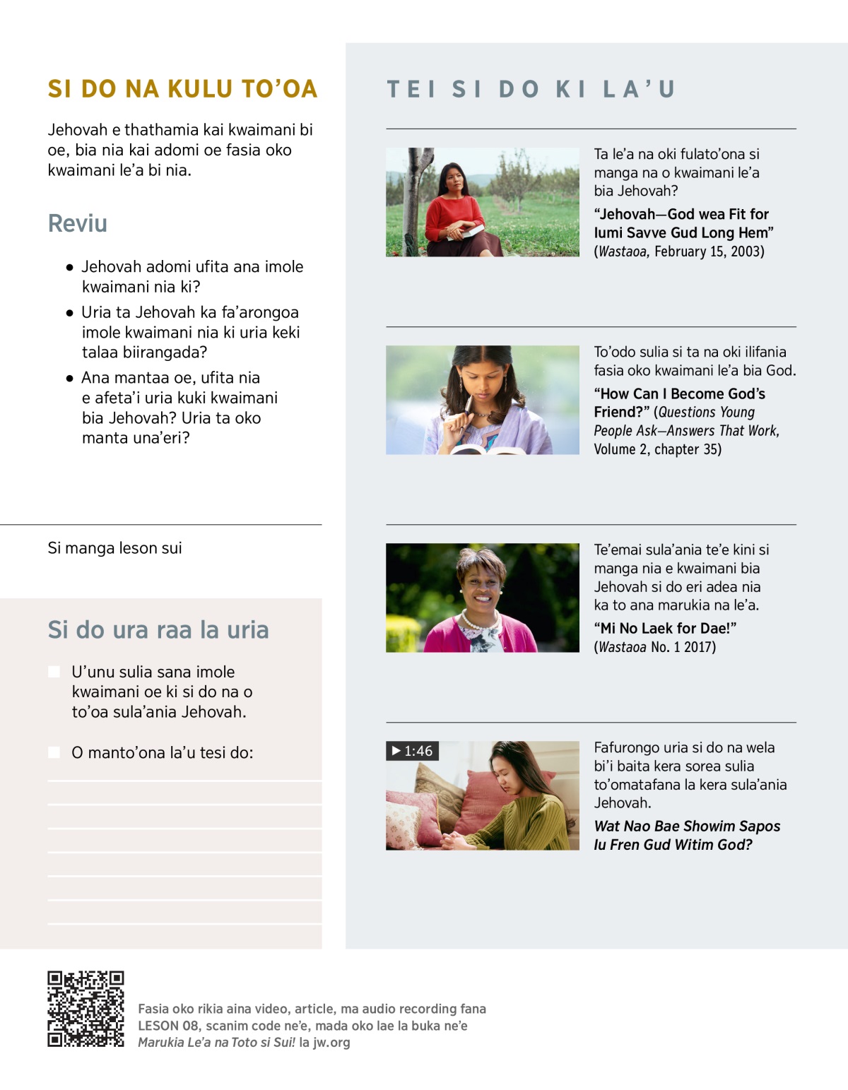 Kuki to’o la’u sulia si do na kuki ilifania fasia kuka kwaimani le’a bia Jehovah, bia kuki to’oa la’u bo’o uria ta Jehovah nia te’e wane kwaimani le’a.