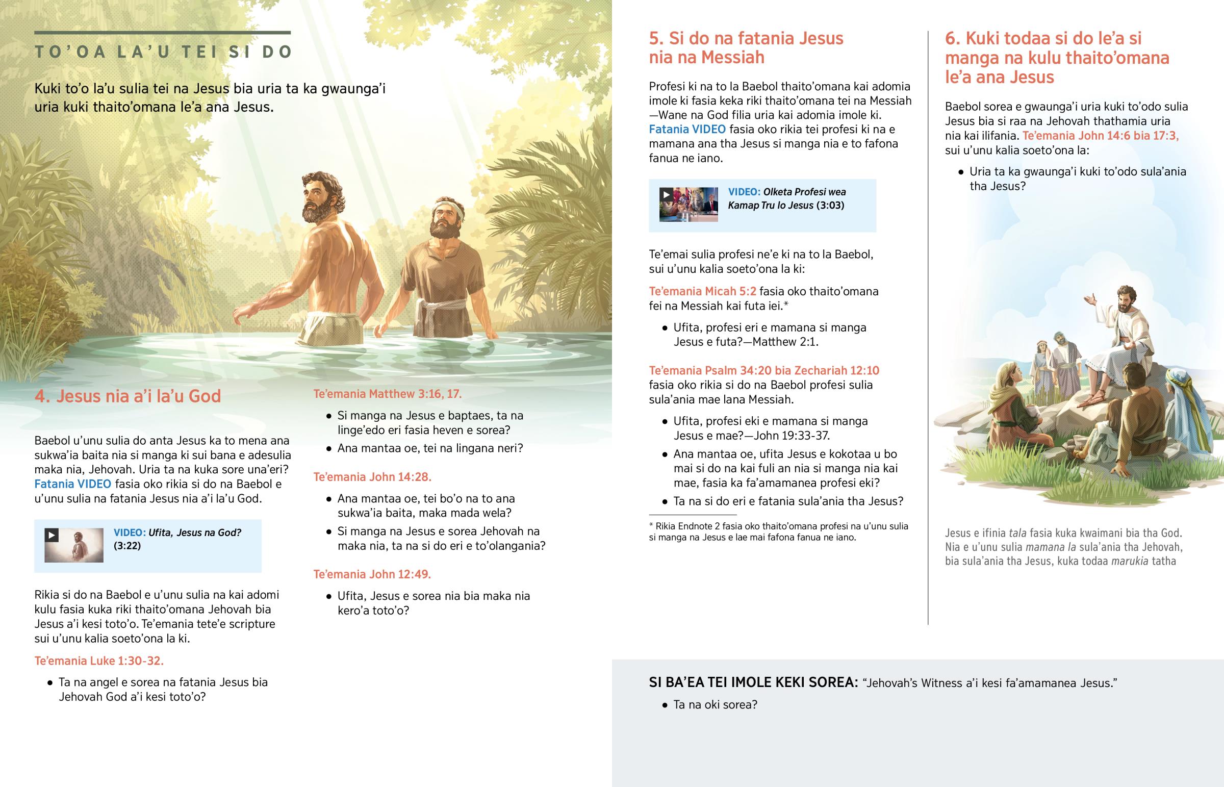 SI BA’EA TEI IMOLE KEKI SOREA: “Jehovah’s Witness a’i kesi fa’amamanea Jesus.”