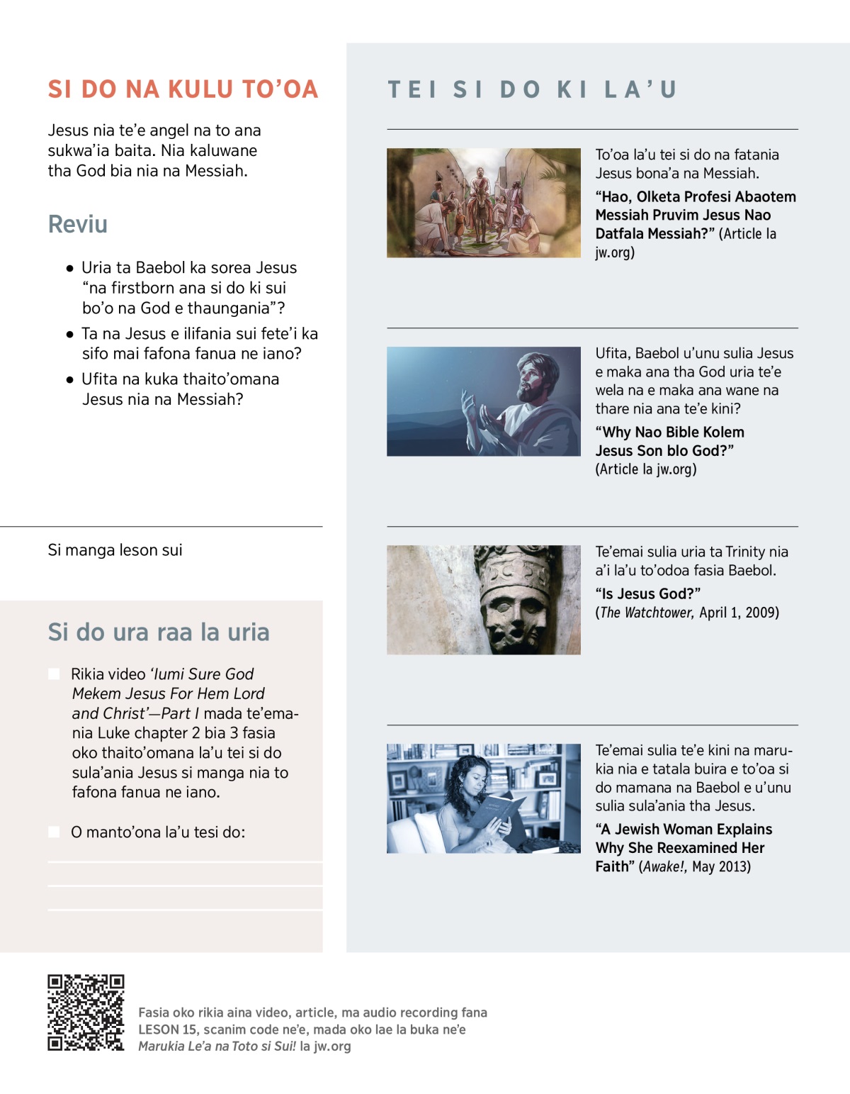 “Why Nao Bible Kolem Jesus Son blo God?” (Article la jw.org)