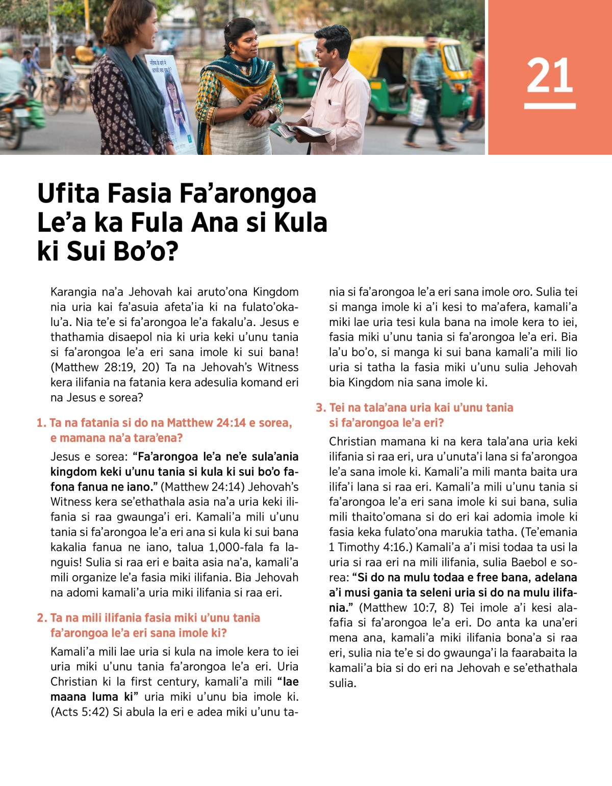 • Ufita Fasia Fa’arongoa Le’a ka Fula Ana si Kula ki Sui Bo’o?