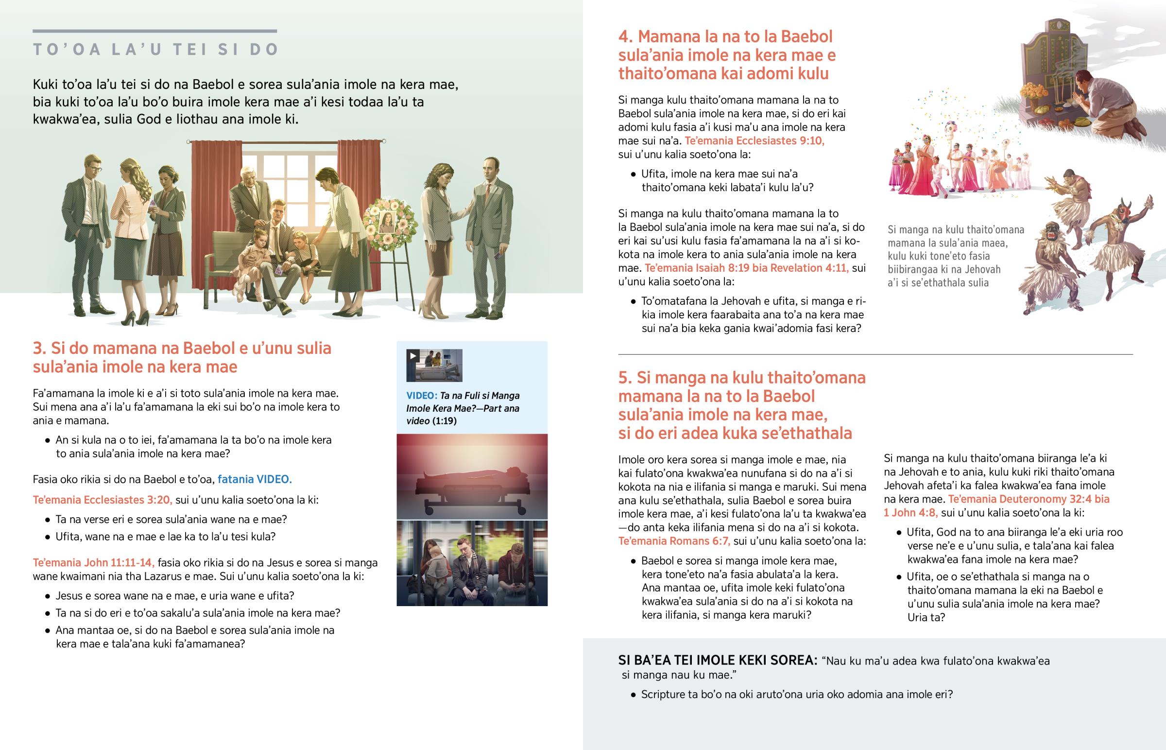 Si manga kulu thaito’omana mamana la na to la Baebol sula’ania imole na kera mae, si do eri kai adomi kulu fasia a’i kusi ma’u ana imole na kera mae sui na’a. Te’emania Ecclesiastes 9:​10, sui u’unu kalia soeto’ona la: