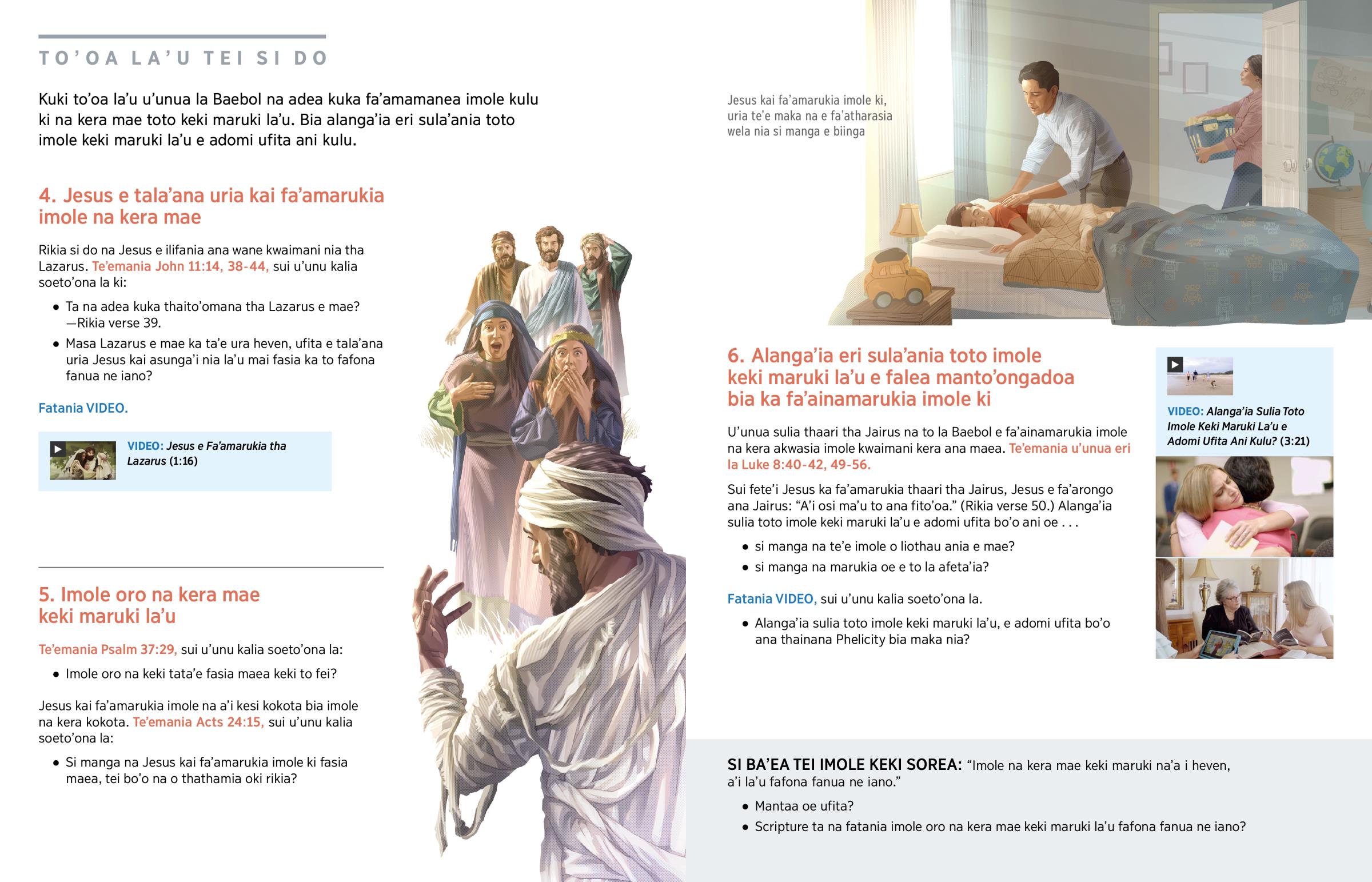 Ta na adea kuka thaito’omana tha Lazarus e mae? —Rikia verse 39.