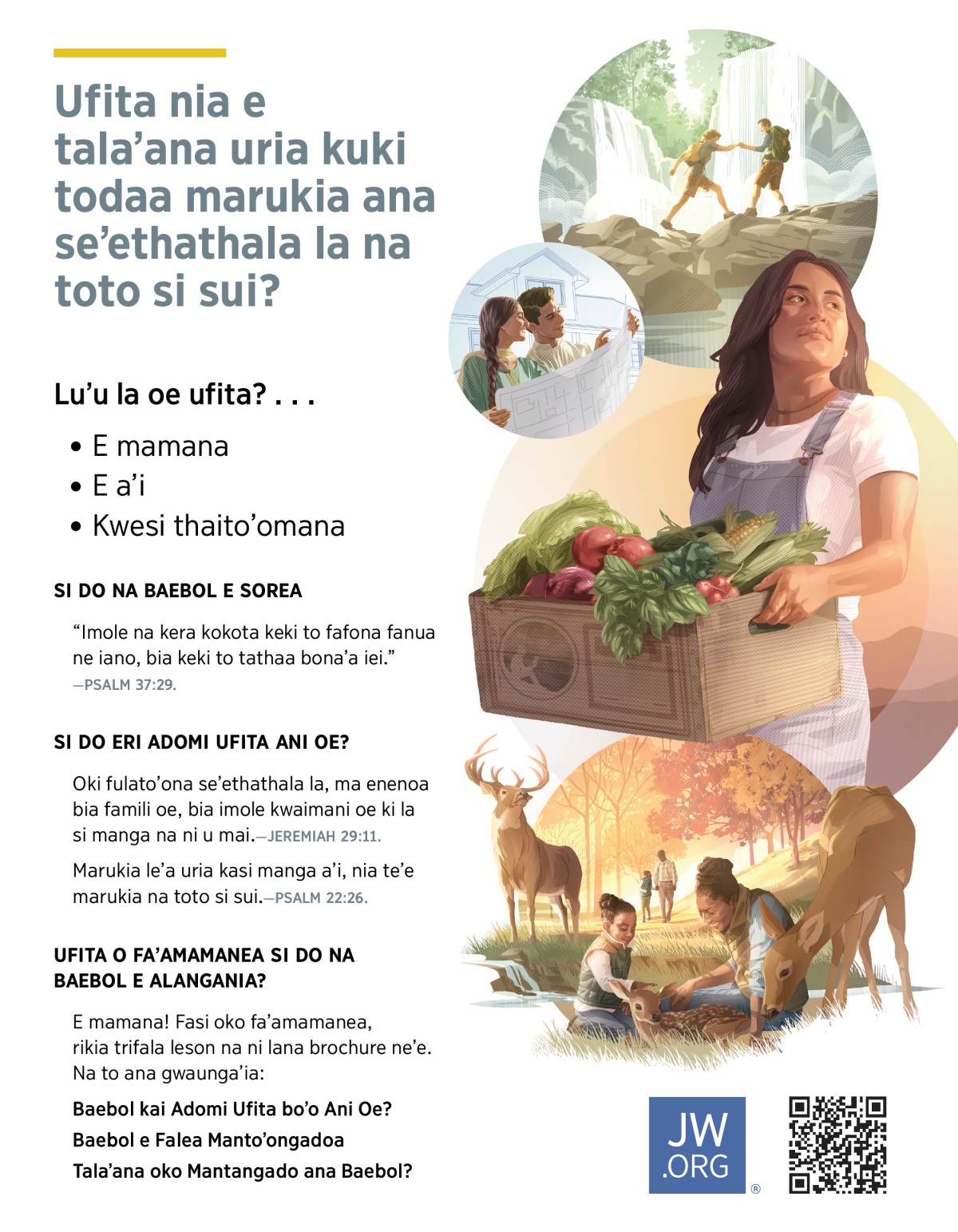 E mamana! Fasi oko fa’amamanea, rikia trifala leson na ni lana brochure ne’e. Na to ana gwaunga’ia: