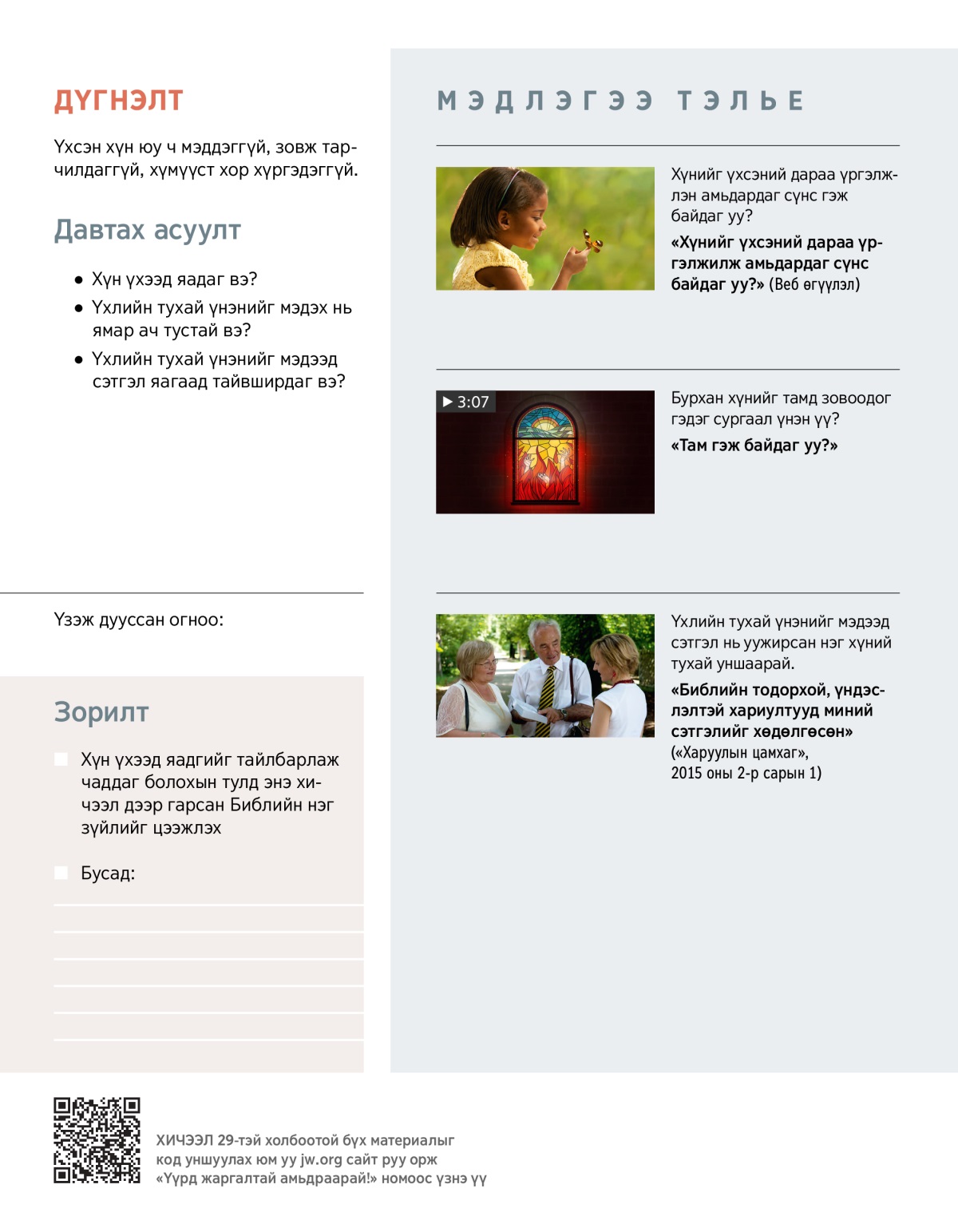 • Та тэр хүнд Библиэс ямар ямар зүйл үзүүлмээр байна вэ? Яагаад?