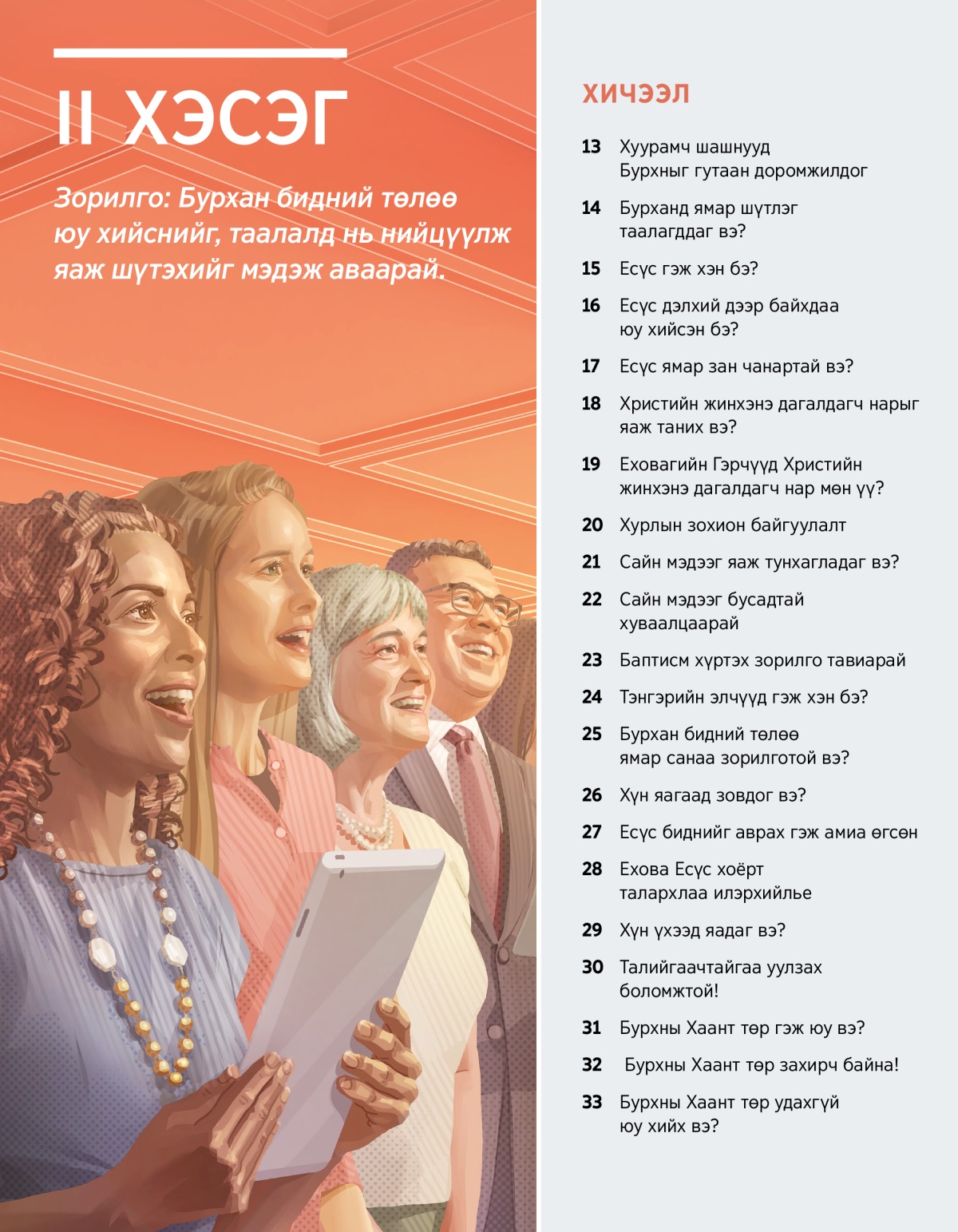Зорилго: Бурхан бидний төлөө юу хийснийг, таалалд нь нийцүүлж яаж шүтэхийг мэдэж аваарай.