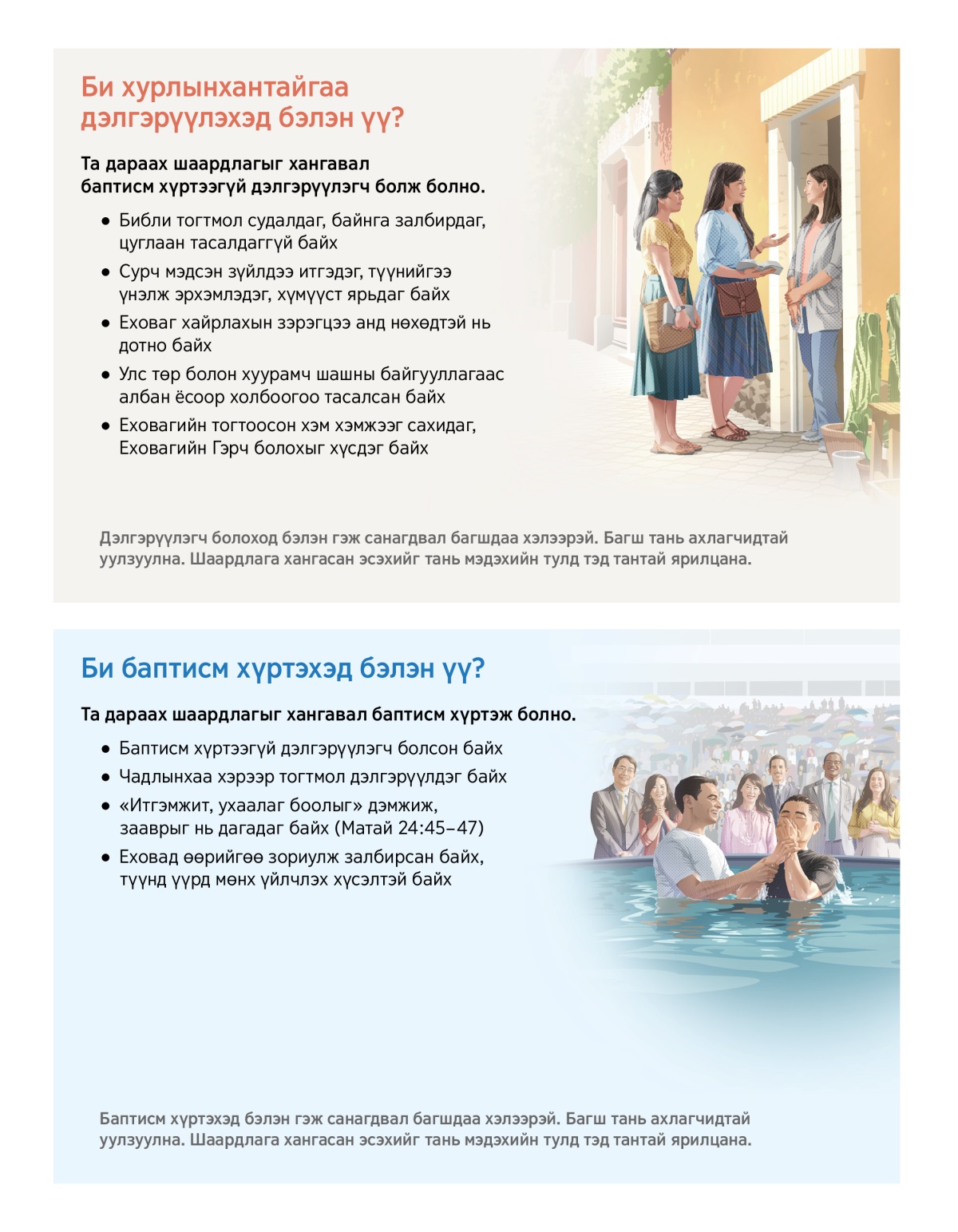 Та дараах шаардлагыг хангавал баптисм хүртэж болно.