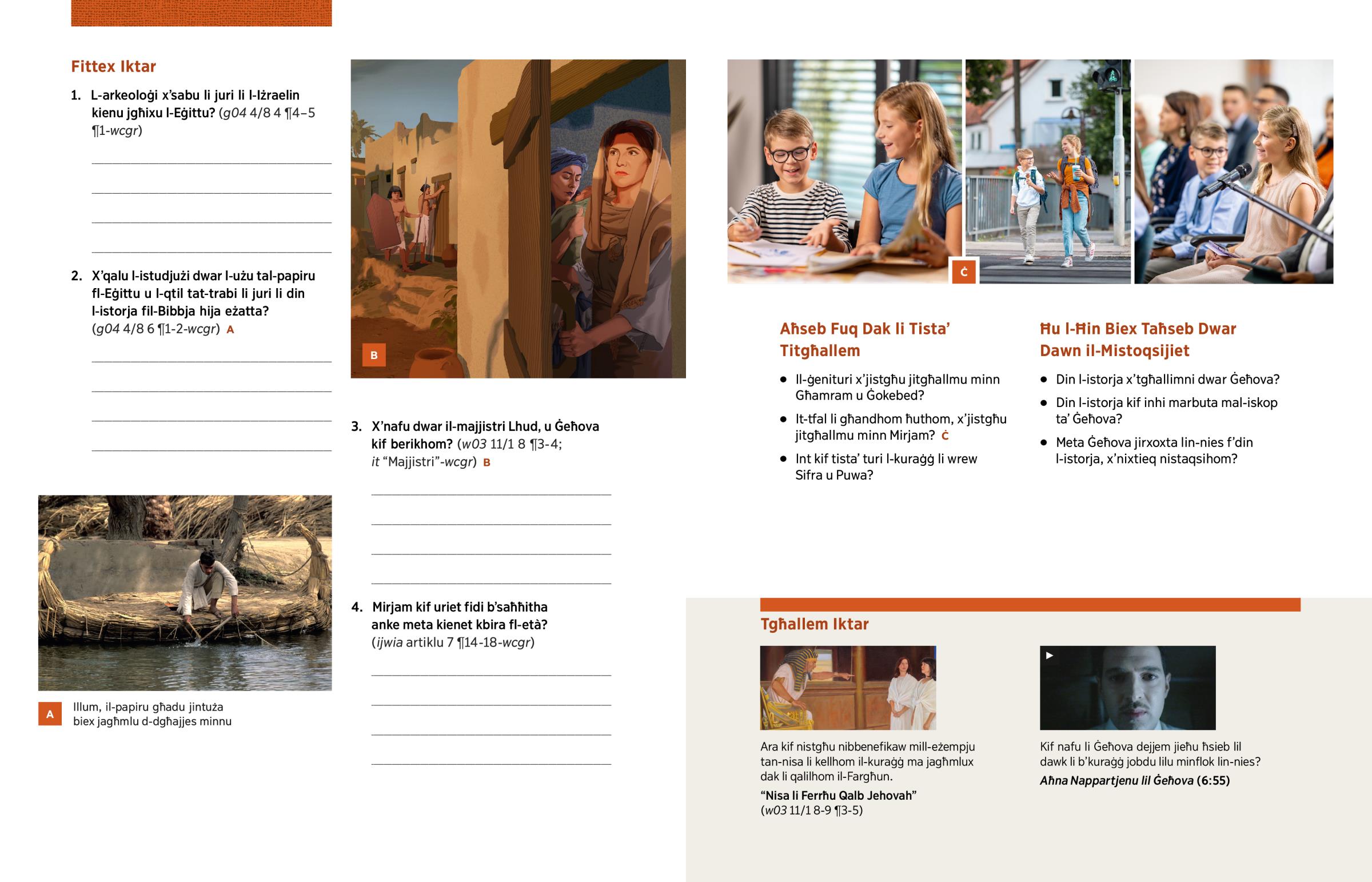 3. X’nafu dwar il-majjistri Lhud, u Ġeħova kif berikhom? (w03 11/1 8 ¶3-4; it “Majjistri”-wcgr) B