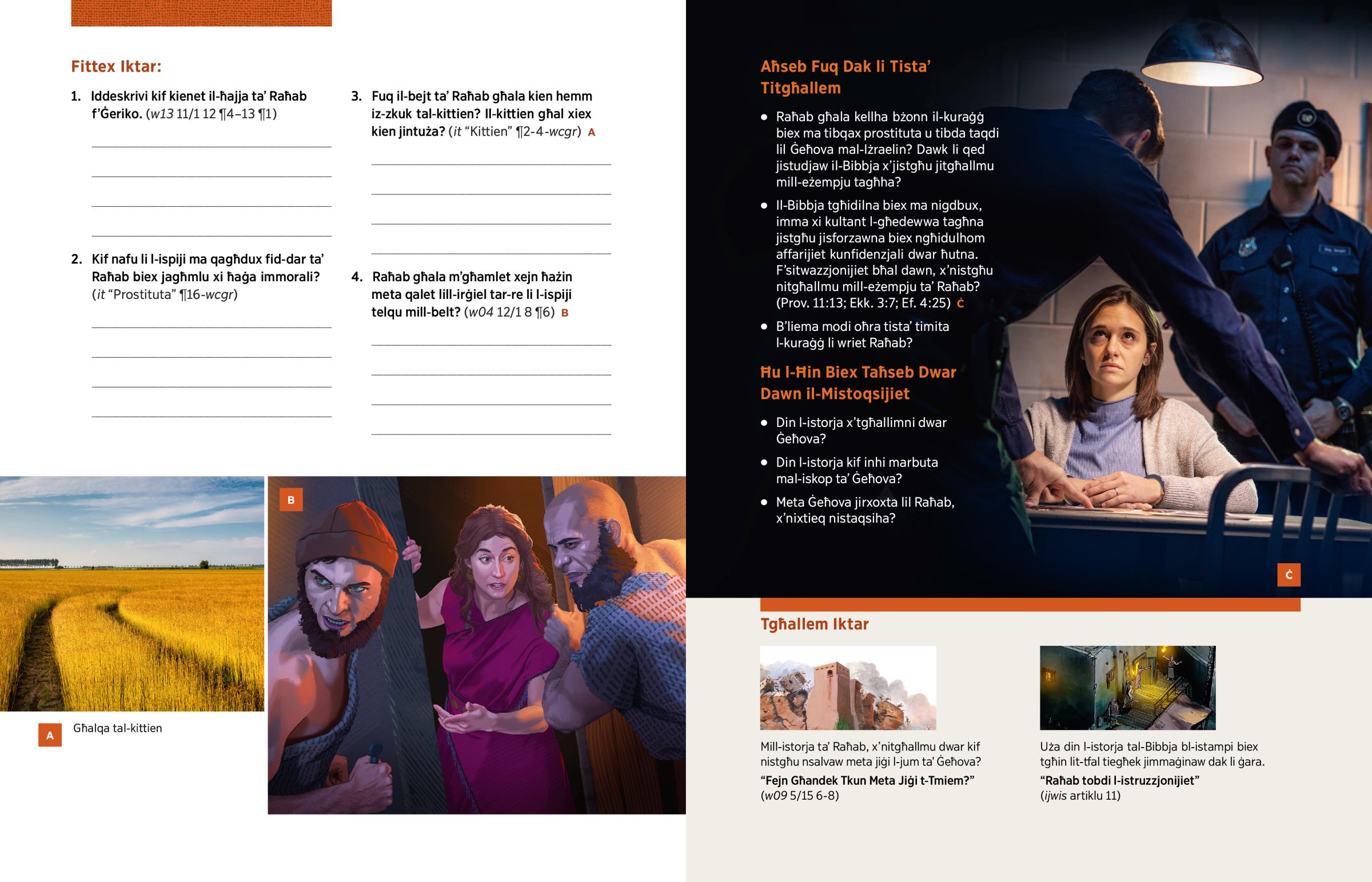 2. Kif nafu li l-ispiji ma qagħdux fid-dar taʼ Raħab biex jagħmlu xi ħaġa immorali? (it “Prostituta” ¶16-wcgr)