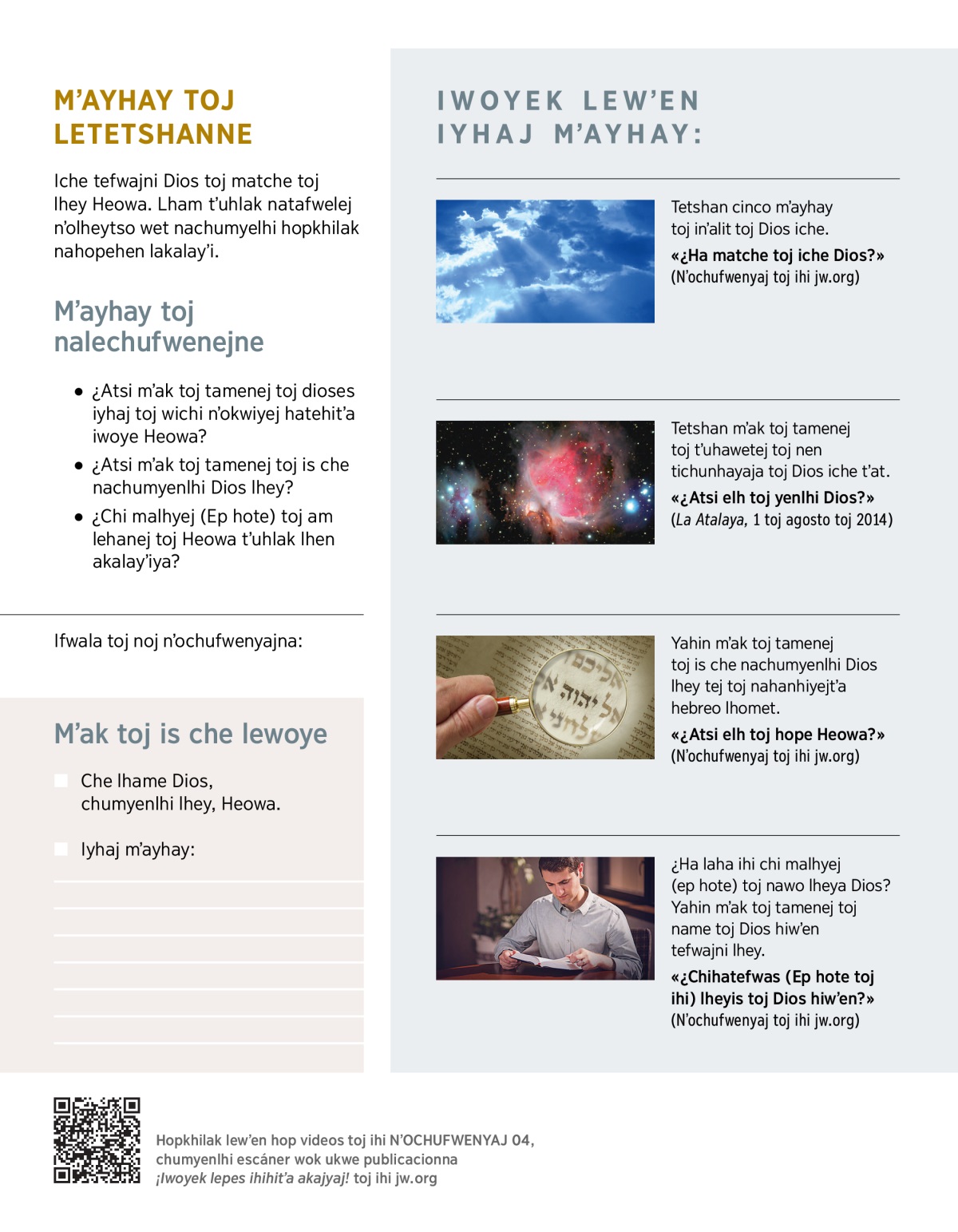 «¿Ha matche toj iche Dios?» (Nʼochufwenyaj toj ihi jw.org)