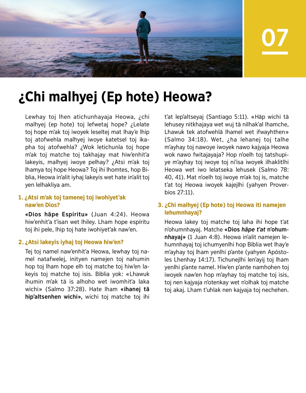 • ¿Atsi mʼak toj ichufwen amej lewhay toj Heowa hiwʼen toj laka wichi ihi letelaythayaj? (Tetshan versículos 7 wet 8).
