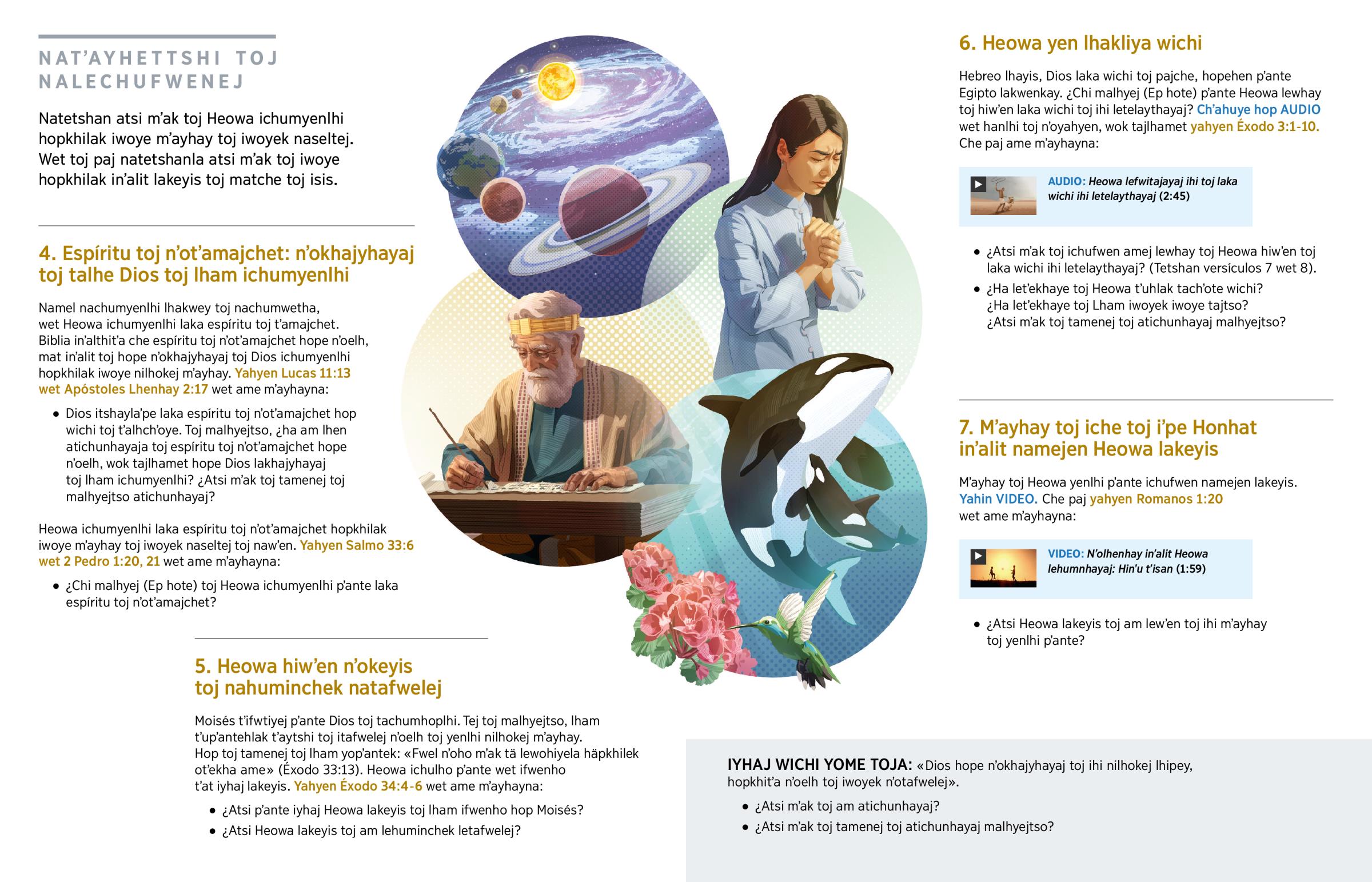 Nʼopeykhas toj inʼalit mʼak toj Dios yenlhi toj ichumyenlhi laka espíritu toj nʼotʼamajchet: 1. Mʼayhay toj ikapha wet planetas. 2. Hinʼu toj ilesayen pʼante Biblia toj itihi Dios letichunhayaj.