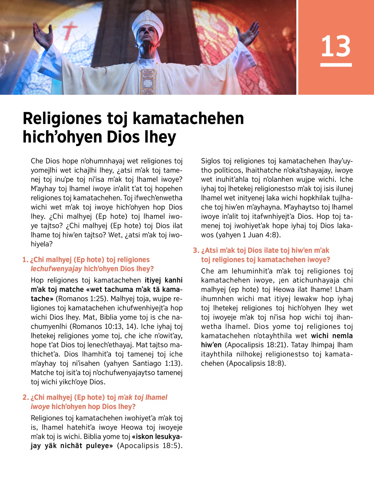 Dios tʼuhlak ifwayhat wichi toj religiones toj kamatachehen ifwenchʼenlhi lhamel. ¿Chi malhyej (Ep hote) atichunhayaj?