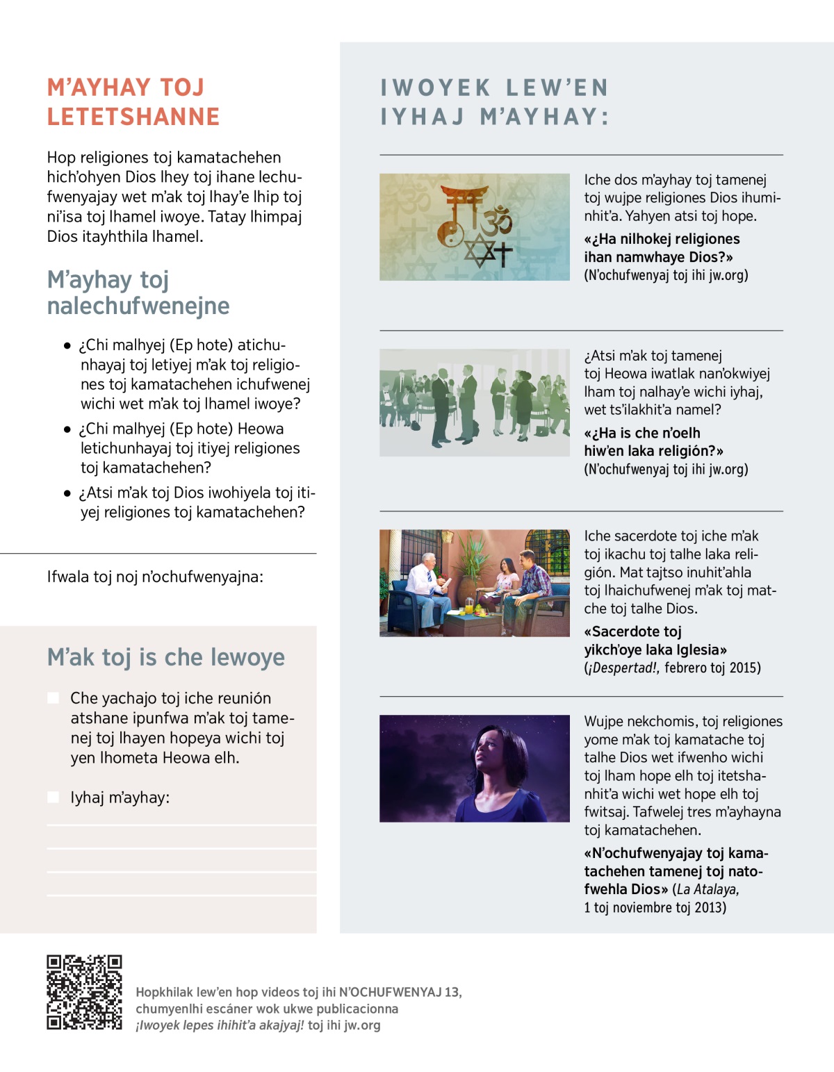 «¿Ha is che nʼoelh hiwʼen laka religión?» (Nʼochufwenyaj toj ihi jw.org)