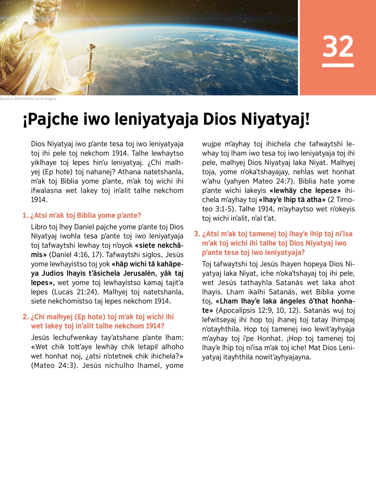 Dios Niyatyaj iwo pʼante tesa toj iwo leniyatyaja toj ihi pele toj nekchom 1914. Talhe lewhaytso yiklhaye toj lepes hinʼu leniyatyaj. ¿Chi malhyej (Ep hote) toj nahanej? Athana natetshanla, mʼak toj Biblia yome pʼante, mʼak toj wichi ihi ifwalasna wet lakey toj inʼalit talhe nekchom 1914.
