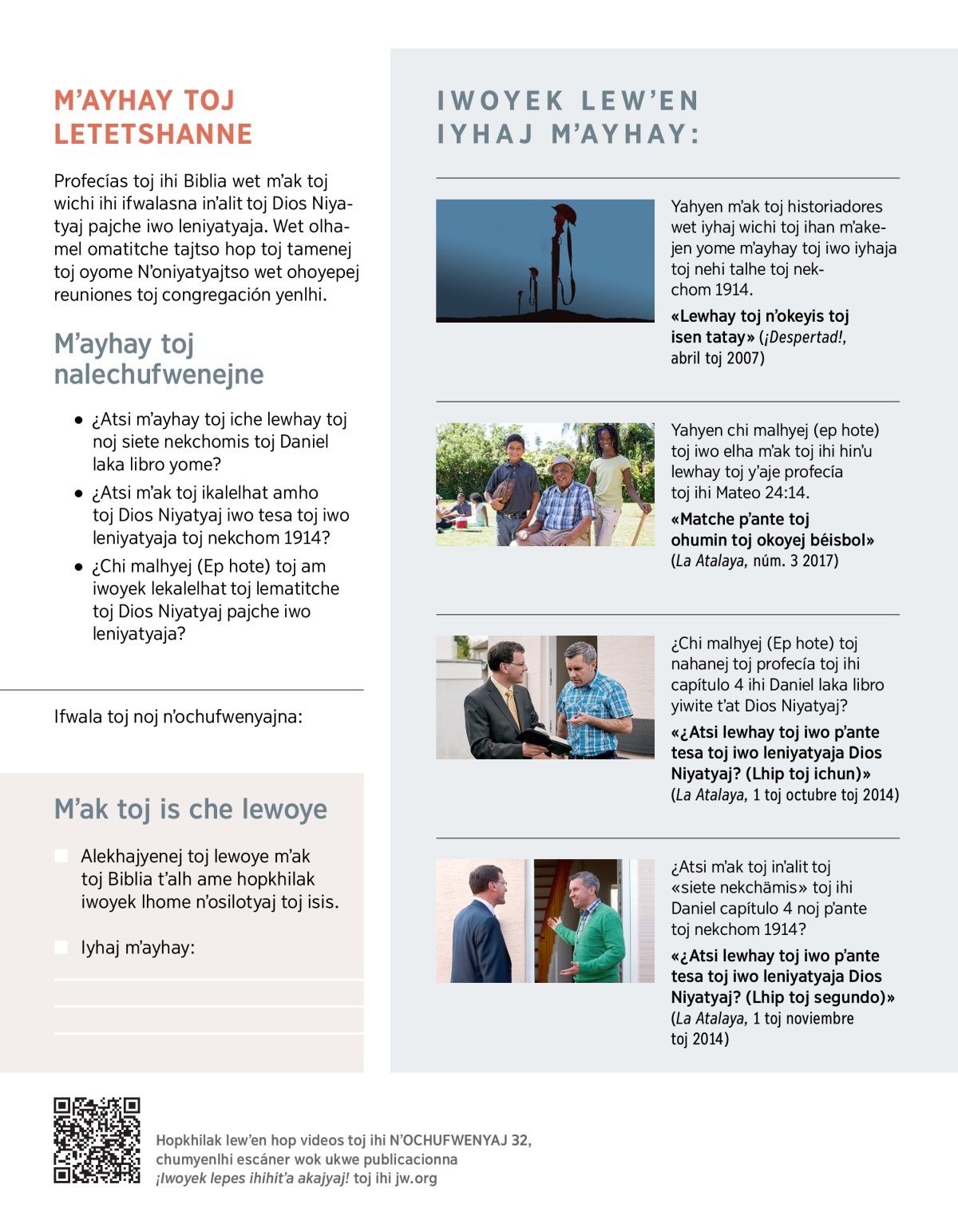 Profecías toj ihi Biblia wet mʼak toj wichi ihi ifwalasna inʼalit toj Dios Niyatyaj pajche iwo leniyatyaja. Wet olhamel omatitche tajtso hop toj tamenej toj oyome Nʼoniyatyajtso wet ohoyepej reuniones toj congregación yenlhi.