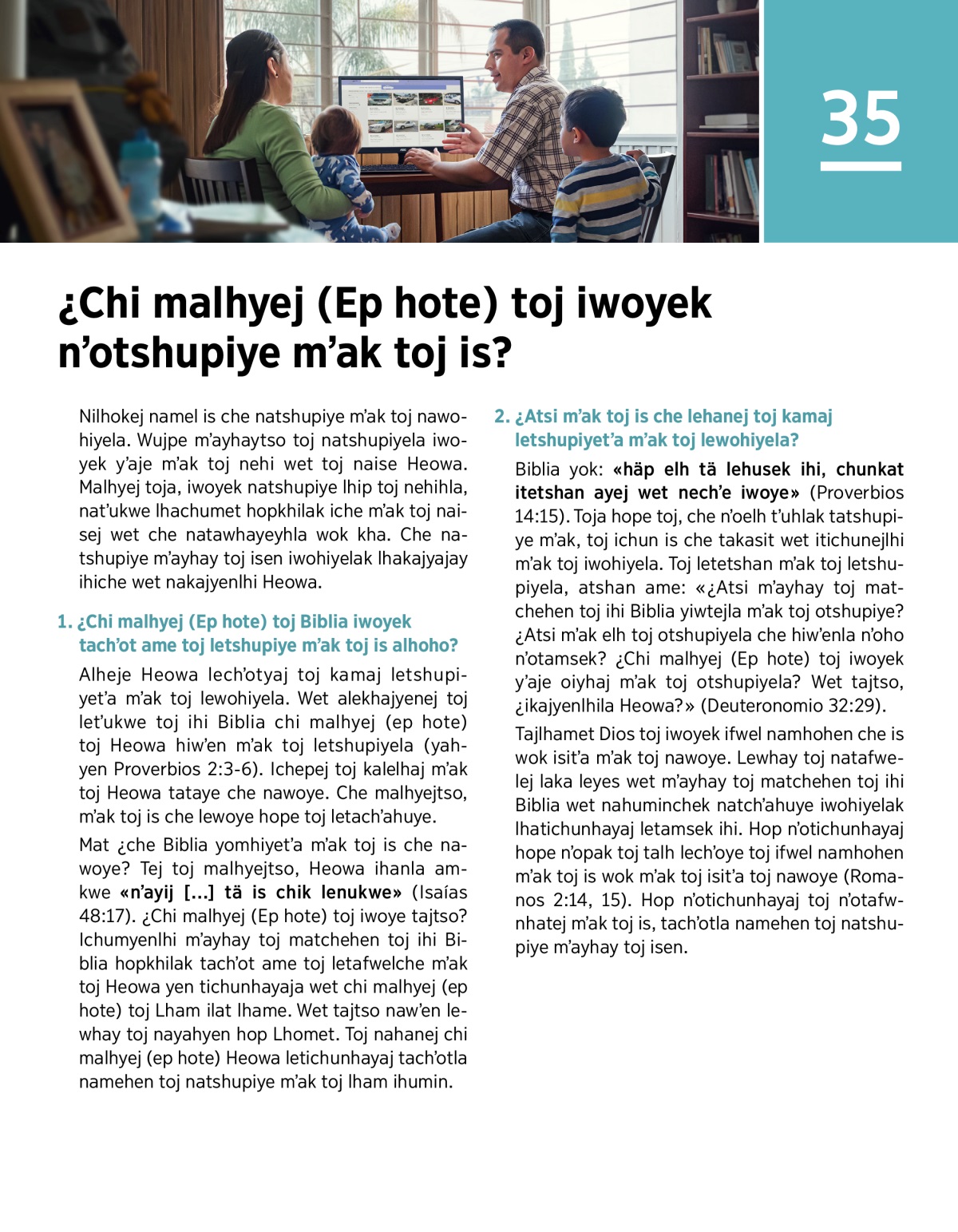 2. Tetshanchʼoye mʼak toj Biblia yome wet mʼak toj ihi publicaciones hopkhilak lewʼen mʼayhay toj matchehen toj ihi Biblia toj yiwite mʼak toj am lehuminchek letshupiye. Hate iwoyek leyʼatshane ipunfwas toj letʼekhayaj takhajay.