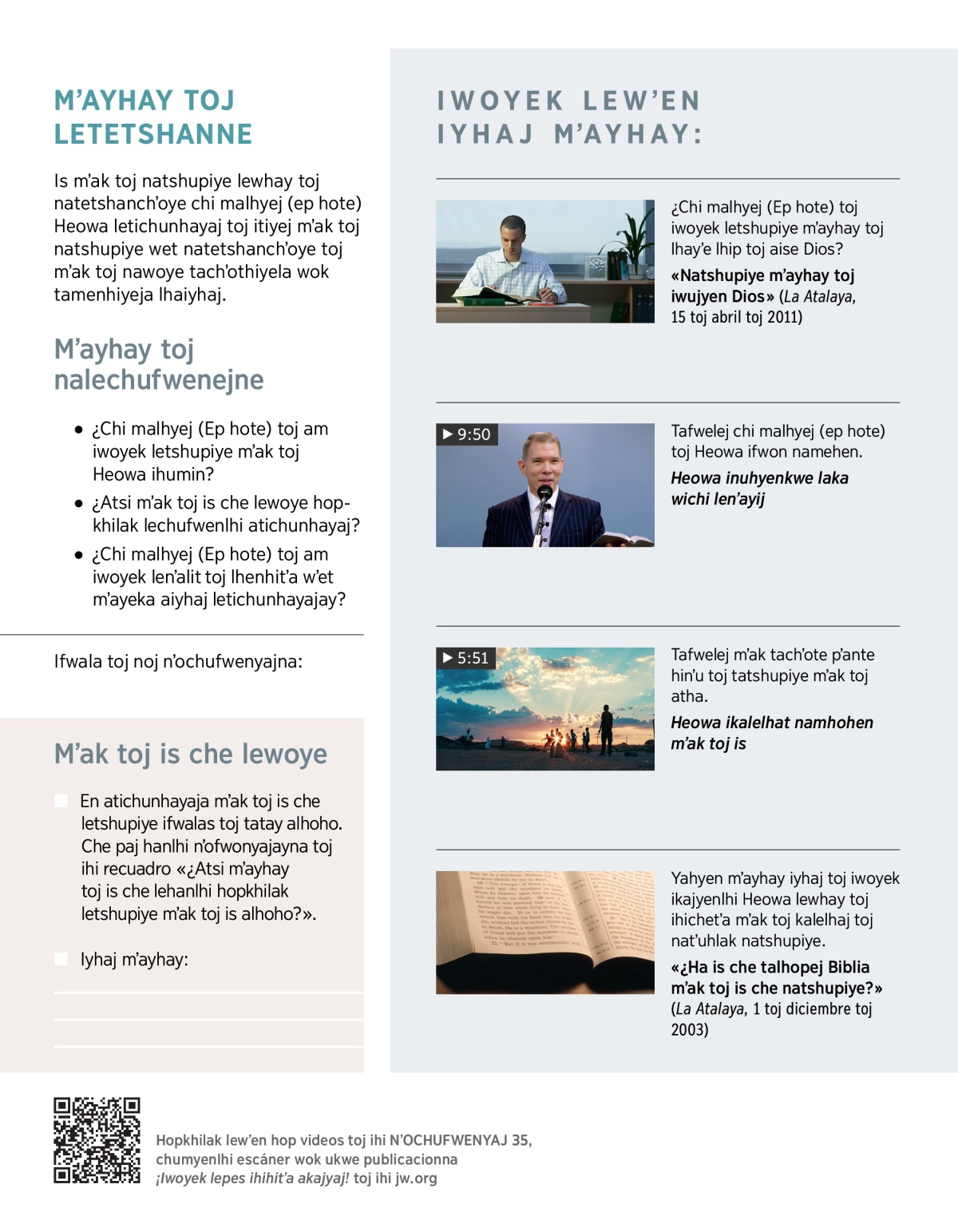 ¿Chi malhyej (Ep hote) toj tachʼot namehen mʼayhay toj matchehen toj ihi Biblia lewhay toj natshupiye mʼayhay? Yahin VIDEO wet ame mʼayhayna: