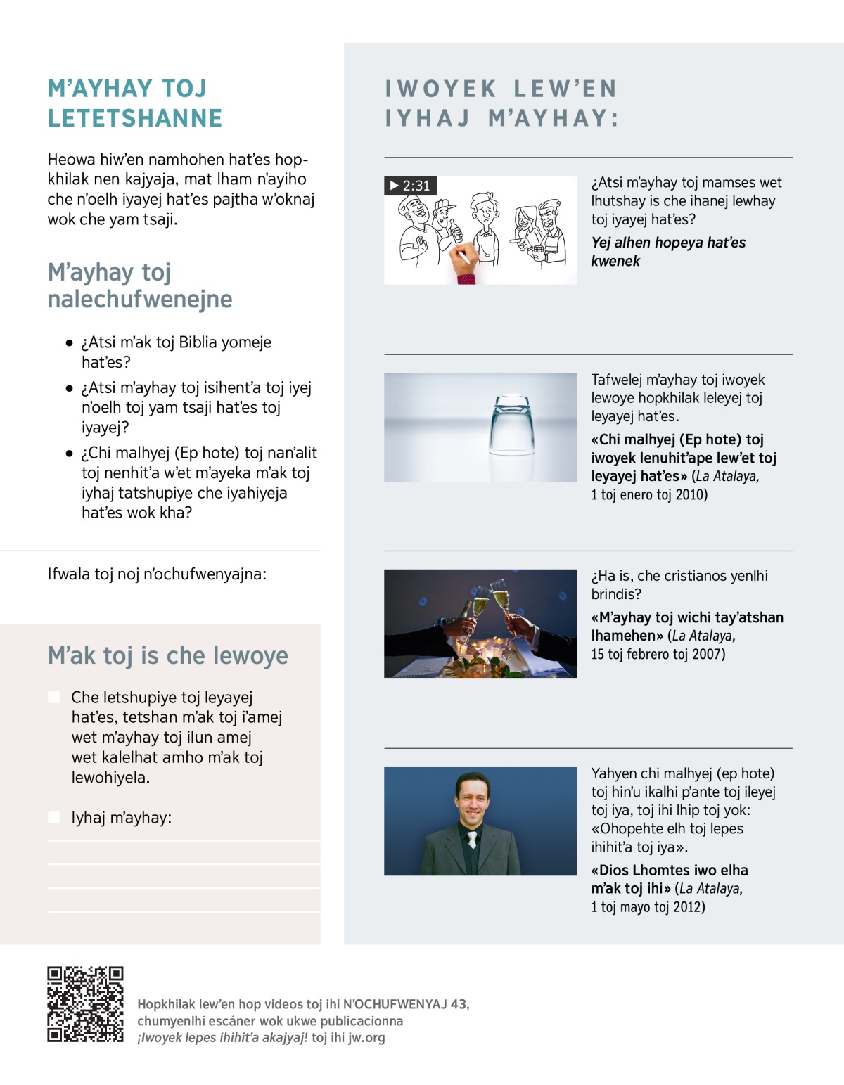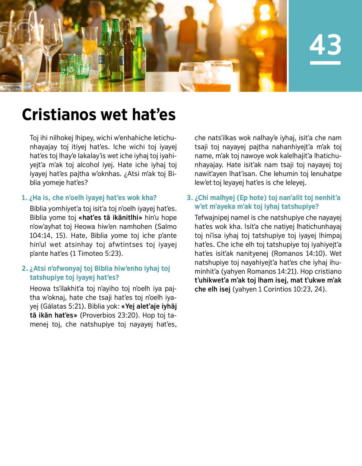 Toj ihi nilhokej lhipey, wichi wʼenhahiche letichunhayajay toj itiyej hatʼes. Iche wichi toj iyayej hatʼes toj lhayʼe lakalayʼis wet iche iyhaj toj iyahiyejtʼa mʼak toj alcohol iyej. Hate iche iyhaj toj iyayej hatʼes pajtha wʼoknhas. ¿Atsi mʼak toj Biblia yomeje hatʼes?
