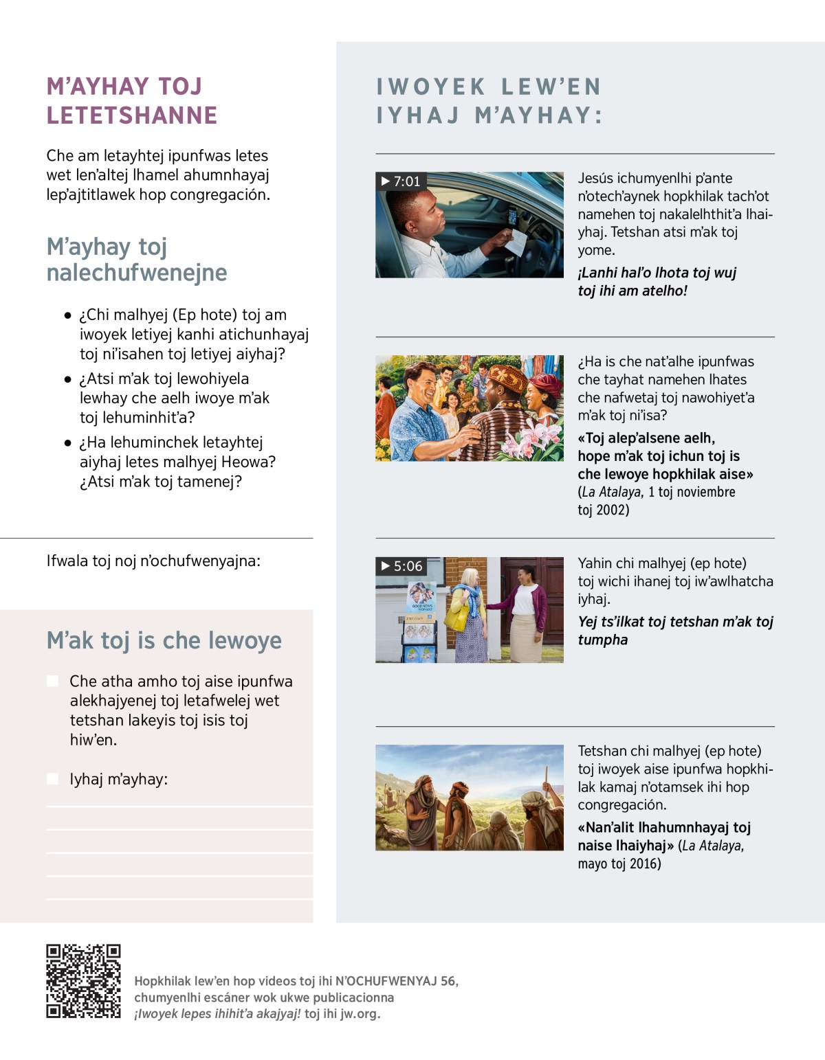 2. ¿Chi malhyej (Ep hote) toj am iwoyek lechʼote aka congregación hopkhilak lhaipʼajtitwek?