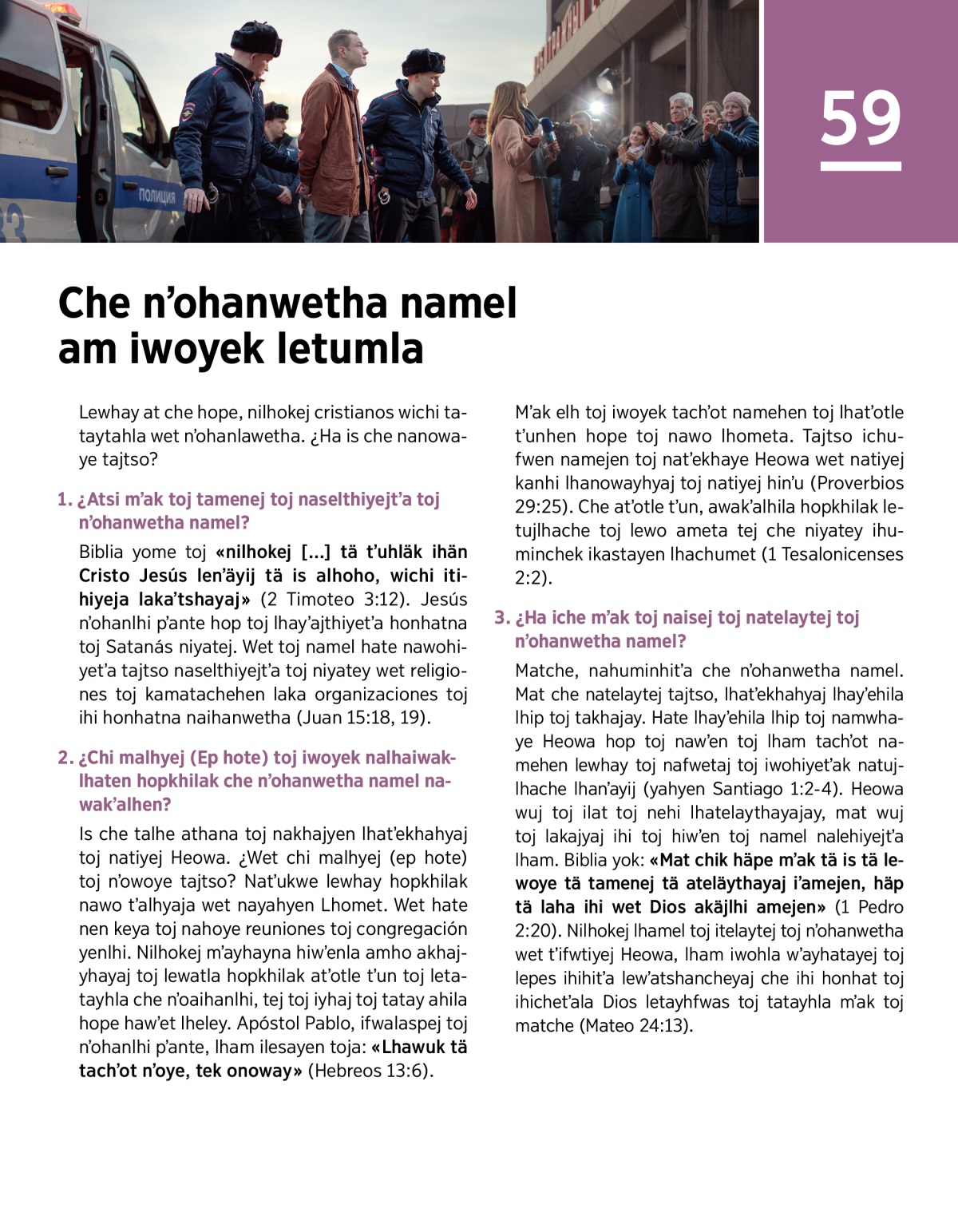 Biblia yome toj «nilhokej [...] tä tʼuhläk ihän Cristo Jesús lenʼäyij tä is alhoho, wichi itihiyeja lakaʼtshayaj» (2 Timoteo 3:12). Jesús nʼohanlhi pʼante hop toj lhayʼajthiyetʼa honhatna toj Satanás niyatej. Wet toj namel hate nawohiyetʼa tajtso naselthiyejtʼa toj niyatey wet religiones toj kamatachehen laka organizaciones toj ihi honhatna naihanwetha (Juan 15:18, 19).
