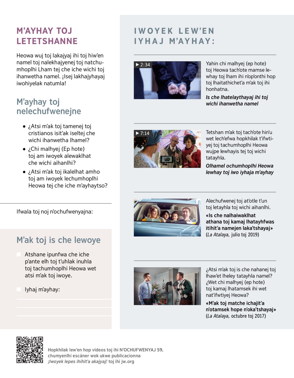 Is che lhatʼotle tʼunhen toj nachumhoplhi Heowa che iche wichi toj tʼuhlak nawohiyetʼa tajtso. Yahin VIDEO wet ame mʼayhayna: