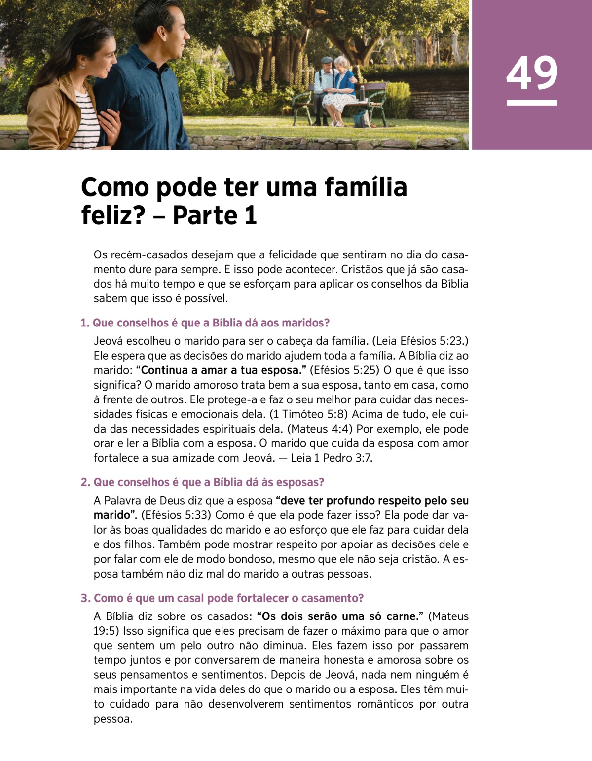 • Se você for casado, que princípio da Bíblia poderia fortalecer o seu casamento?