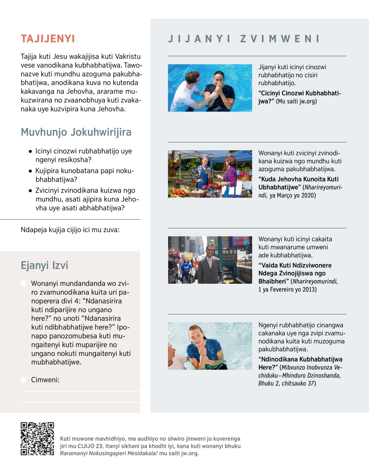 “Kuda Jehovha Kunoita Kuti Ubhabhatijwe” (Nharireyomurindi, ya Março yo 2020)