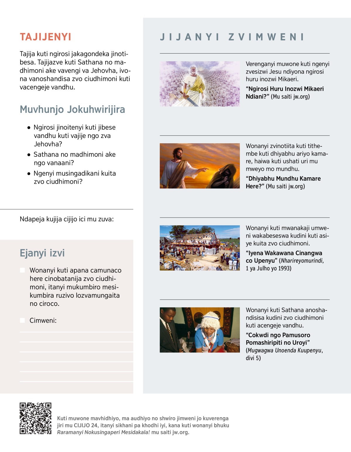 Jijanyi zviro zvakanaka zvinoizwa ngo ngirosi, jijanyizve kuti zvakashatira papi kuita zvo mujimu nokuti tingaitenyi kuti tizvijivirire kuna Sathana no madhimoni ake.