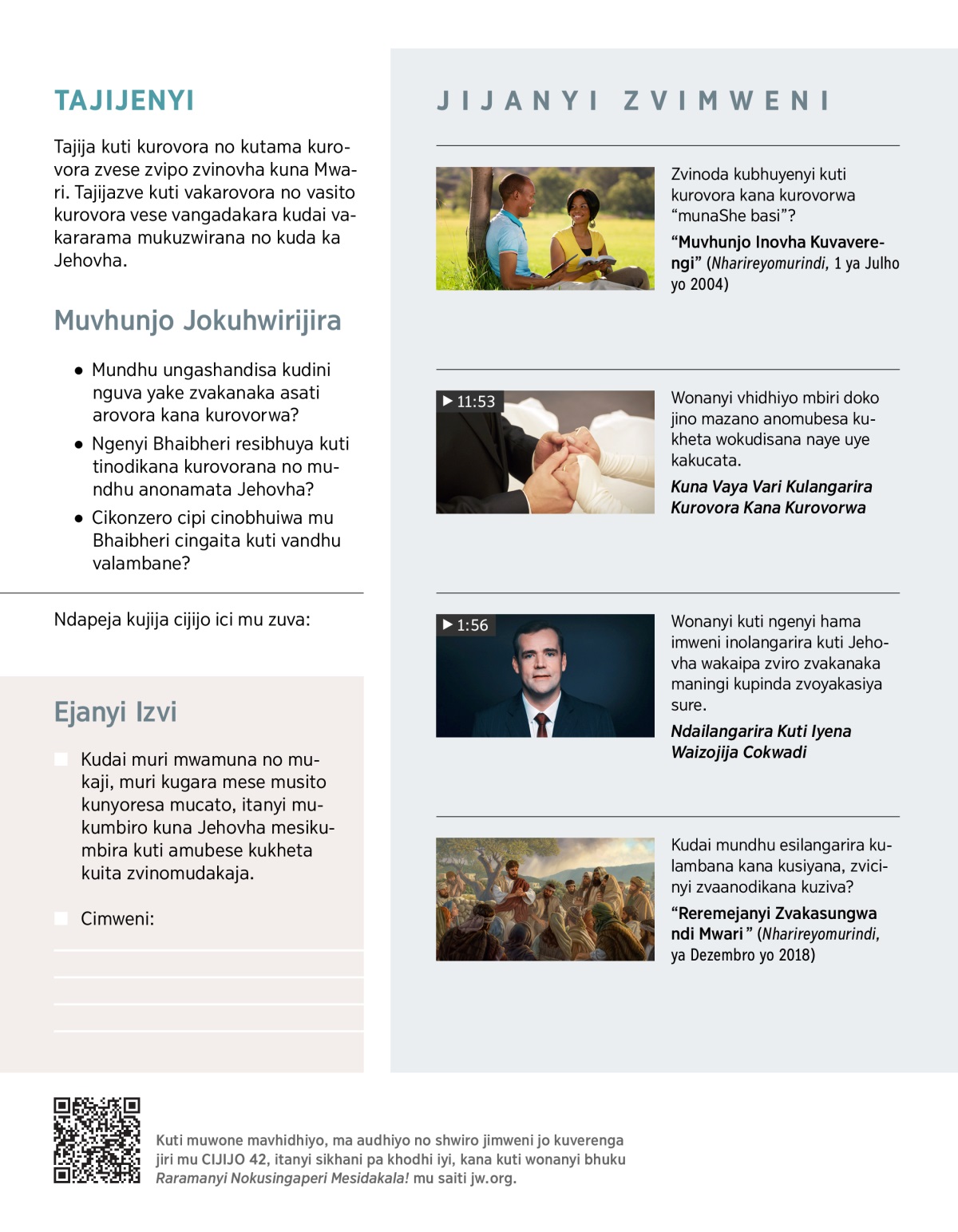Vakristu vasito kurovora kana kurovorwa, vangaitawo zvakatojana no zvakaizwa ndi Jesu. Wonanyi VHIDHIYO, mapeja bhuisananyi ngo muvhunjo unotevera: