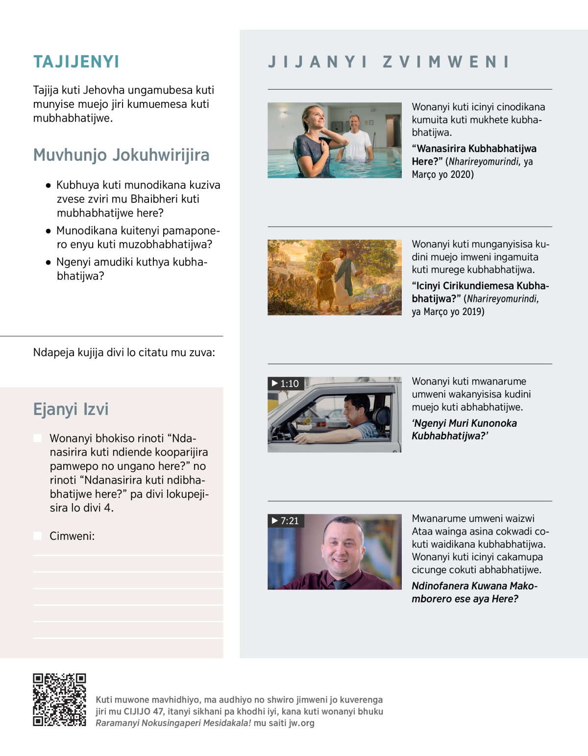 Tajija kuti Jehovha ungamubesa kuti munyise muejo jiri kumuemesa kuti mubhabhatijwe.