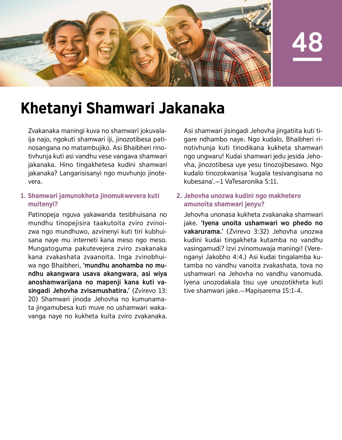 1. Shamwari jamunokheta jinomukwevera kuti muitenyi?